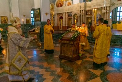Вечером 5 сентября, накануне праздника явления Пресвятой Богородицы преподобному Сергию Радонежскому, дня памяти святителя Петра, митрополита Московского, митрополит Йошкар-Олинский и Марийский Иоанн возглавил всенощное бдение в Благовещенском кафедральном соборе.