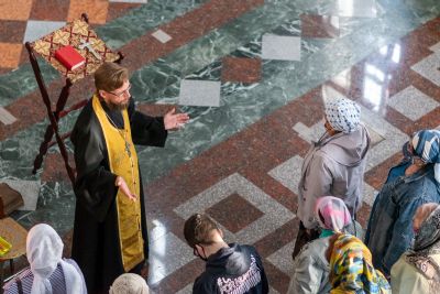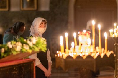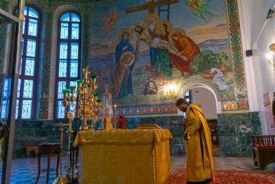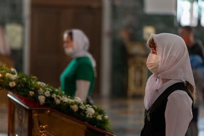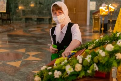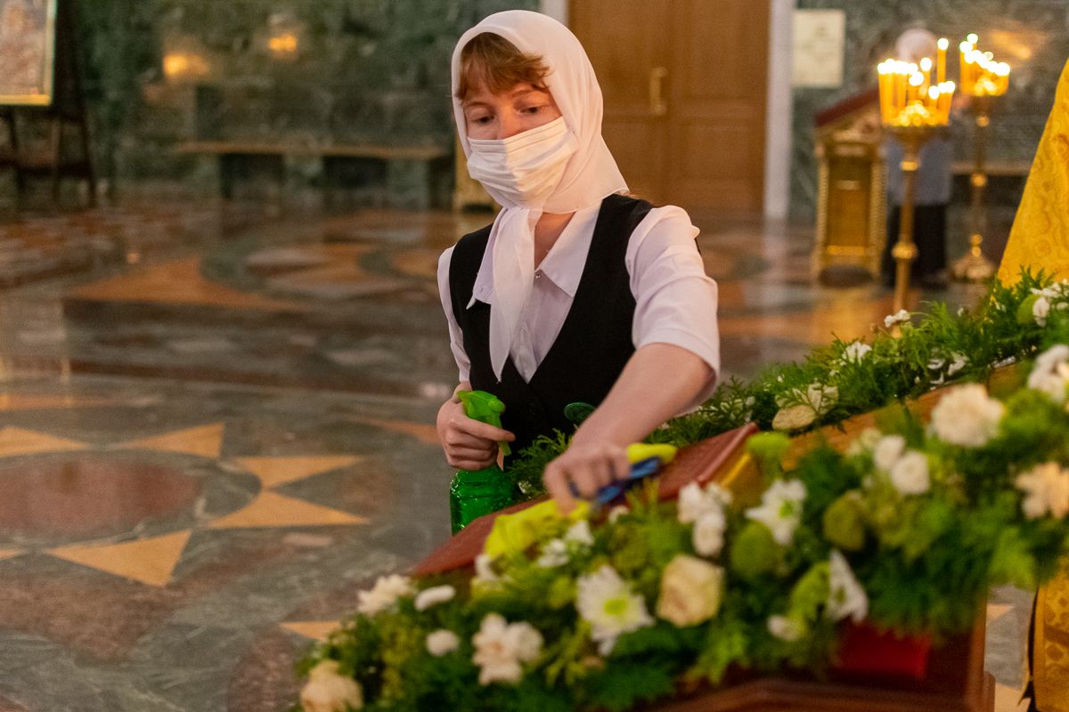 В соответствии с санитарными требованиями, все прихожане находились в храме в медицинских масках, соблюдали социальную дистанцию, иконы обрабатывались дезинфицирующим средством.