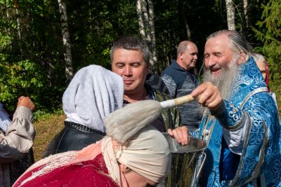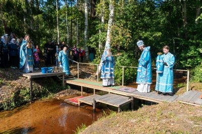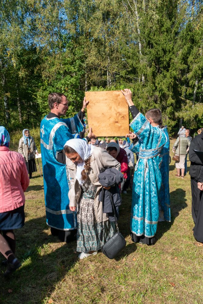 По окончании Литургии был совершен крестный ход и водосвятный молебен. Затем митрополит Иоанн обратился к собравшимся с архипастырским словом, напомнив об обстоятельствах явления Пречистой Богородицы преподобному Сергию и его ученику Михею.