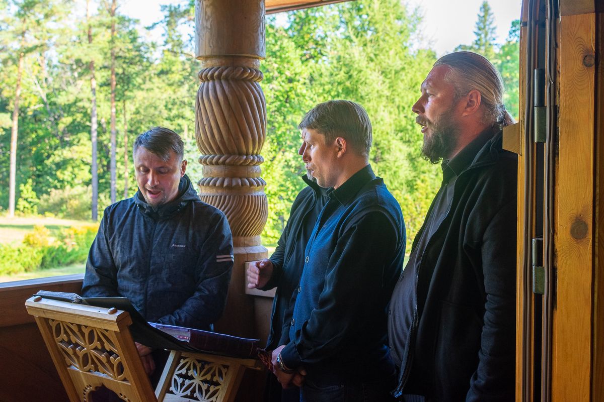 Владыкам сослужили благочинный Северо-Западного церковного округа, настоятель храма пророка Илии п. Килемары протоиерей Андрей Романов, настоятель храма Сретения Господня с. Кучка протоиерей Алексий Вязов и клирик храма Рождества Пресвятой Богородицы с. Семеновка протодиакон Михаил Козловский. Песнопения исполнял мужской хор храма Сретения Господня с. Кучка под руководством регента Сергея Онучина.