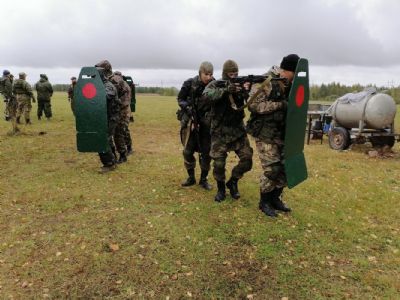 Второй день выдался не менее насыщенным – практическое занятие малыми группами проходило в лесу. Группе необходимо было обнаружить засаду, вызвать их огнем на основную группу и самим отойти на безопасное расстояние. Это была своего рода реконструкция боя к 75-летию Победы. Все группы достойно справились с поставленной задачей.