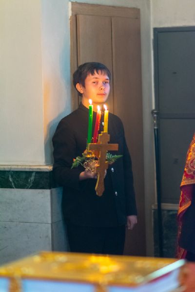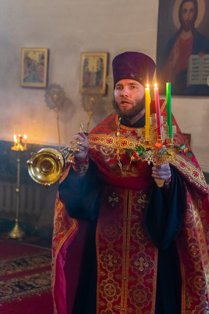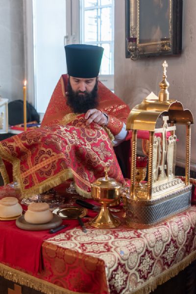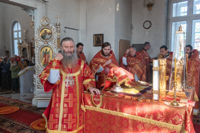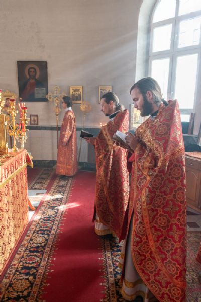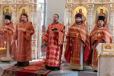 Архипастырю сослужили настоятель храма иерей Алексий Кирюшкин, клирики храма иереи Леонид Вылекжанин, Андрей Кочаков, диакон Алексей Кузнецов, клирик храма Рождества Христова г. Йошкар-Олы иерей Никита Смирнов и клирик Благовещенского кафедрального собора диакон Игорь Коваль. Песнопения исполнял хор Воскресенского собора под управлением регента Алисы Вылекжаниной.