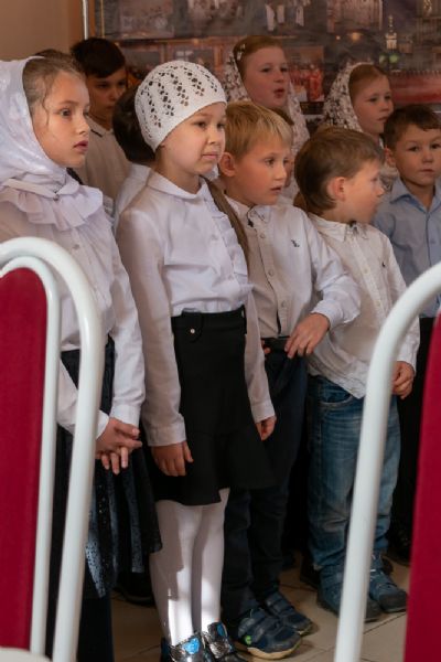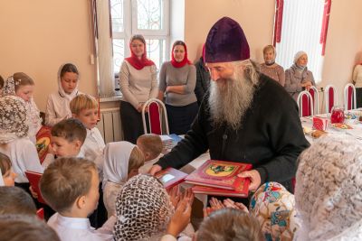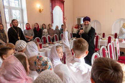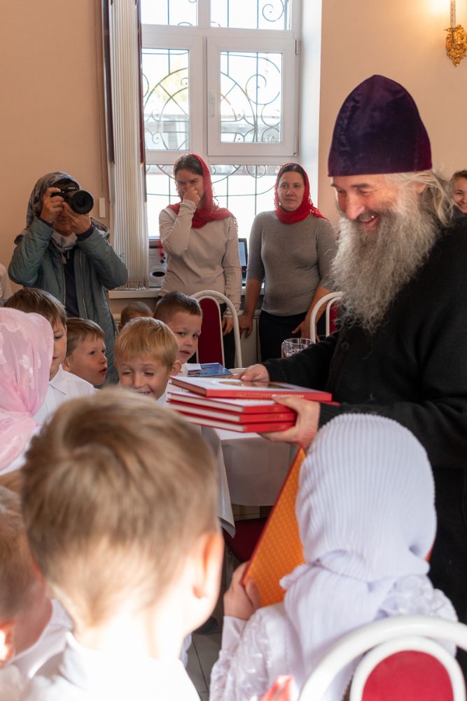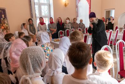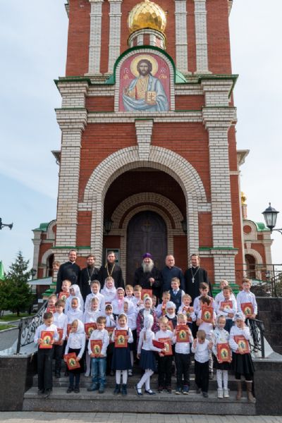 После богослужения состоялось торжественное открытие при Воскресенском соборе детской воскресной школы во имя святого благоверного князя Александра Невского. Владыка поздравил ребят, которые будут учиться в этой школе, и подарил им красочные детские Библии.