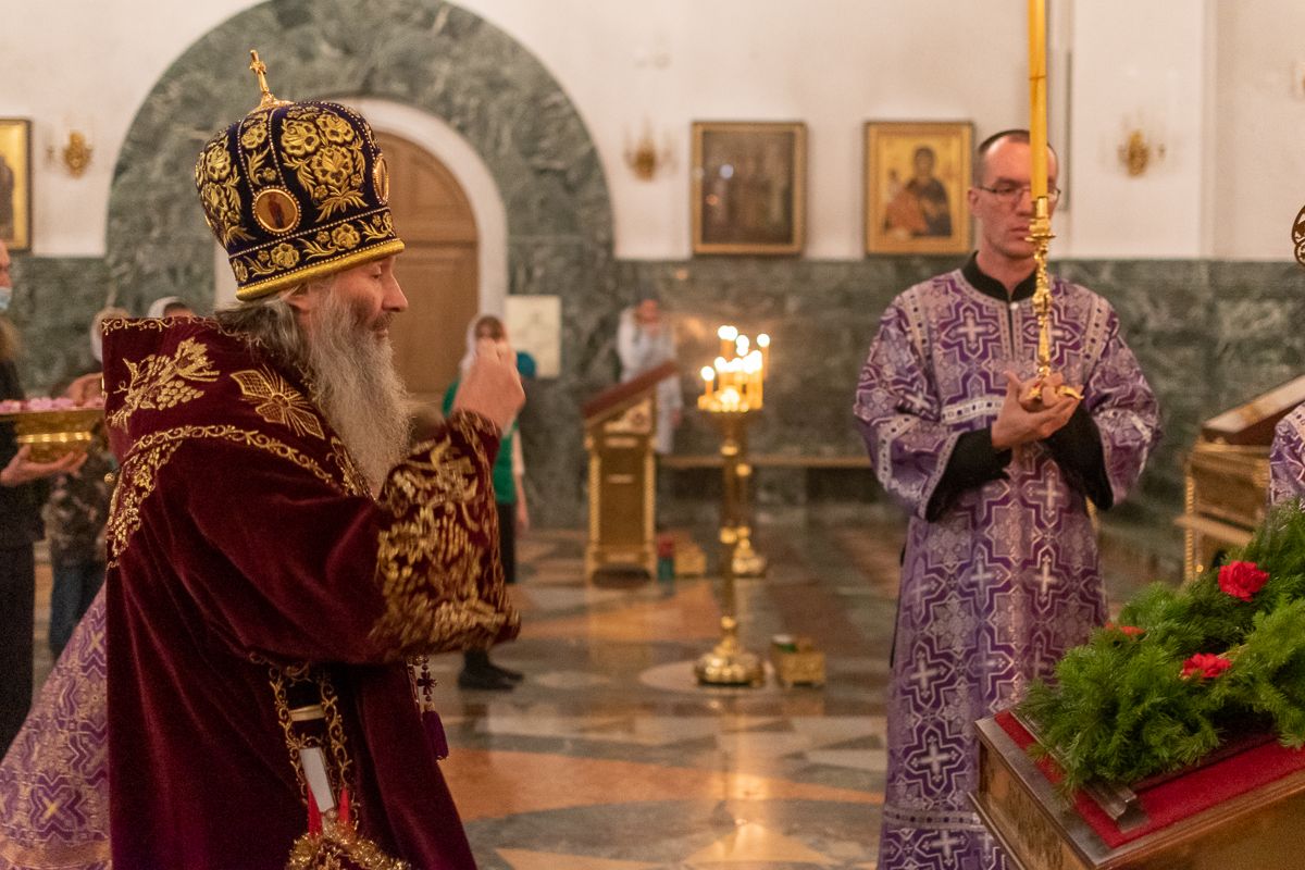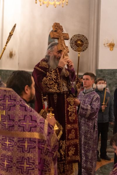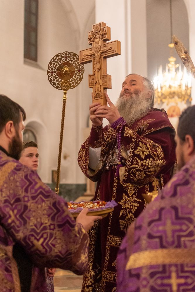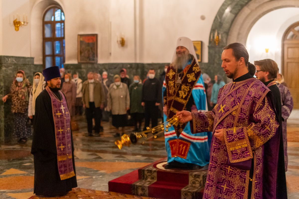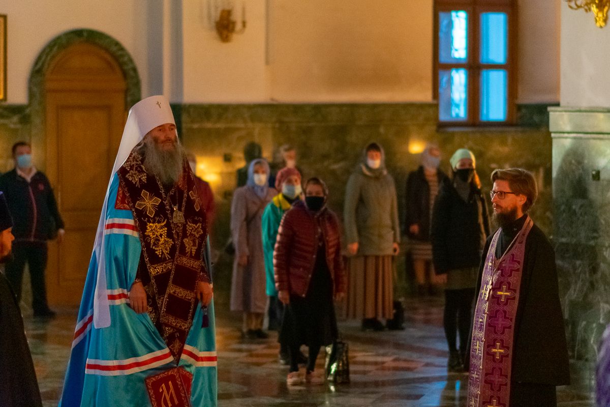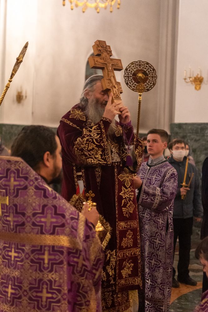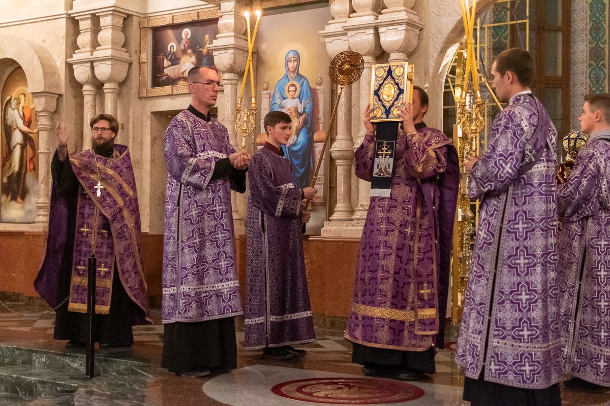 Накануне вечером Владыка возглавил всенощное бдение с чином Воздвижения Креста в Благовещенском кафедральном соборе.