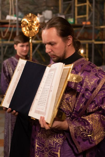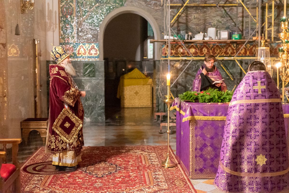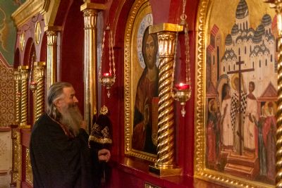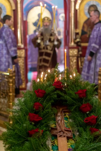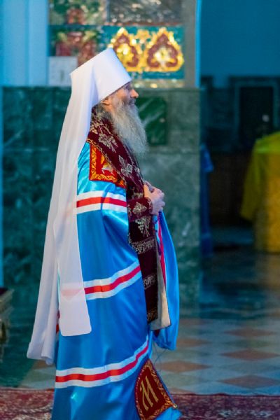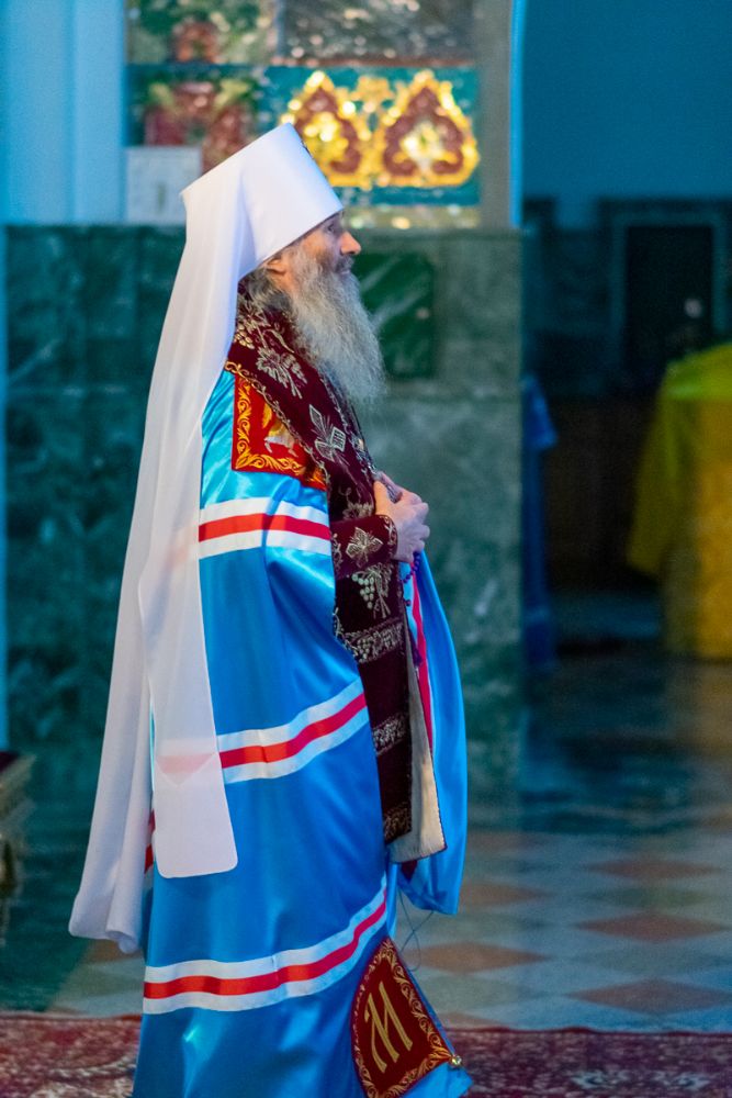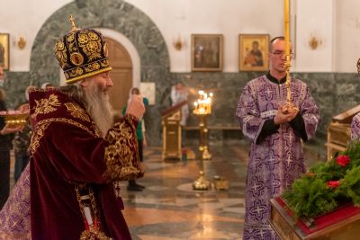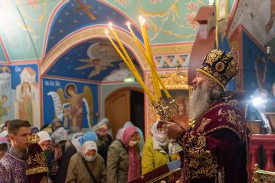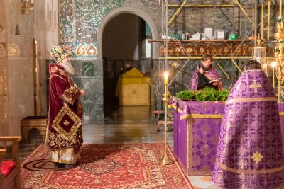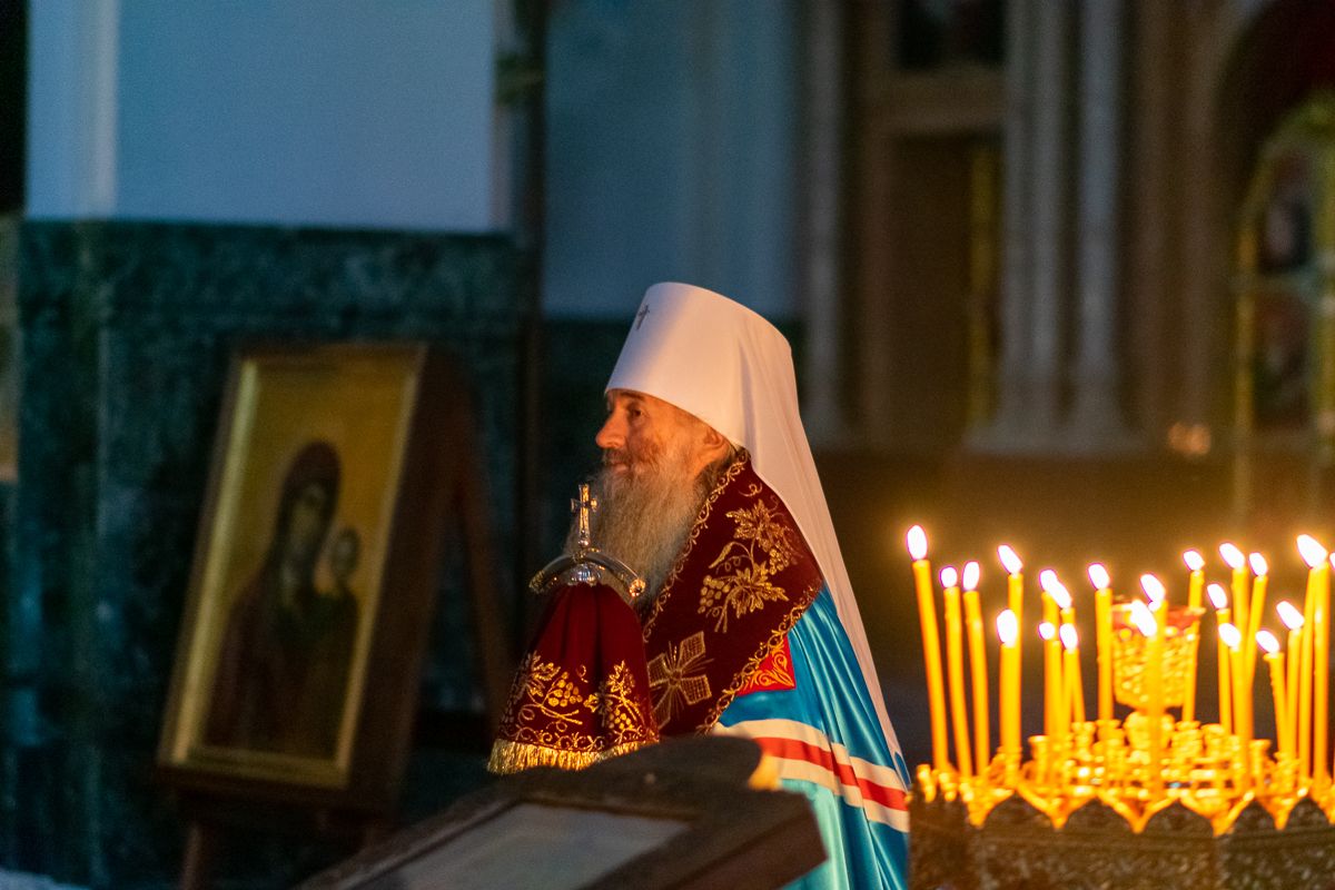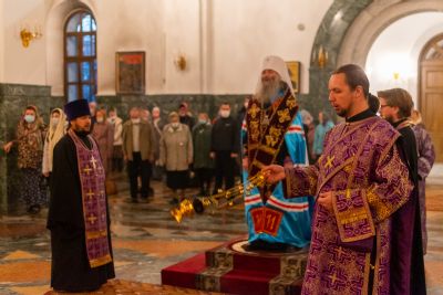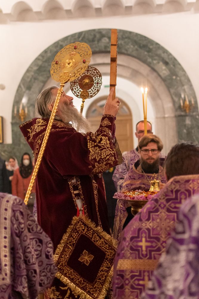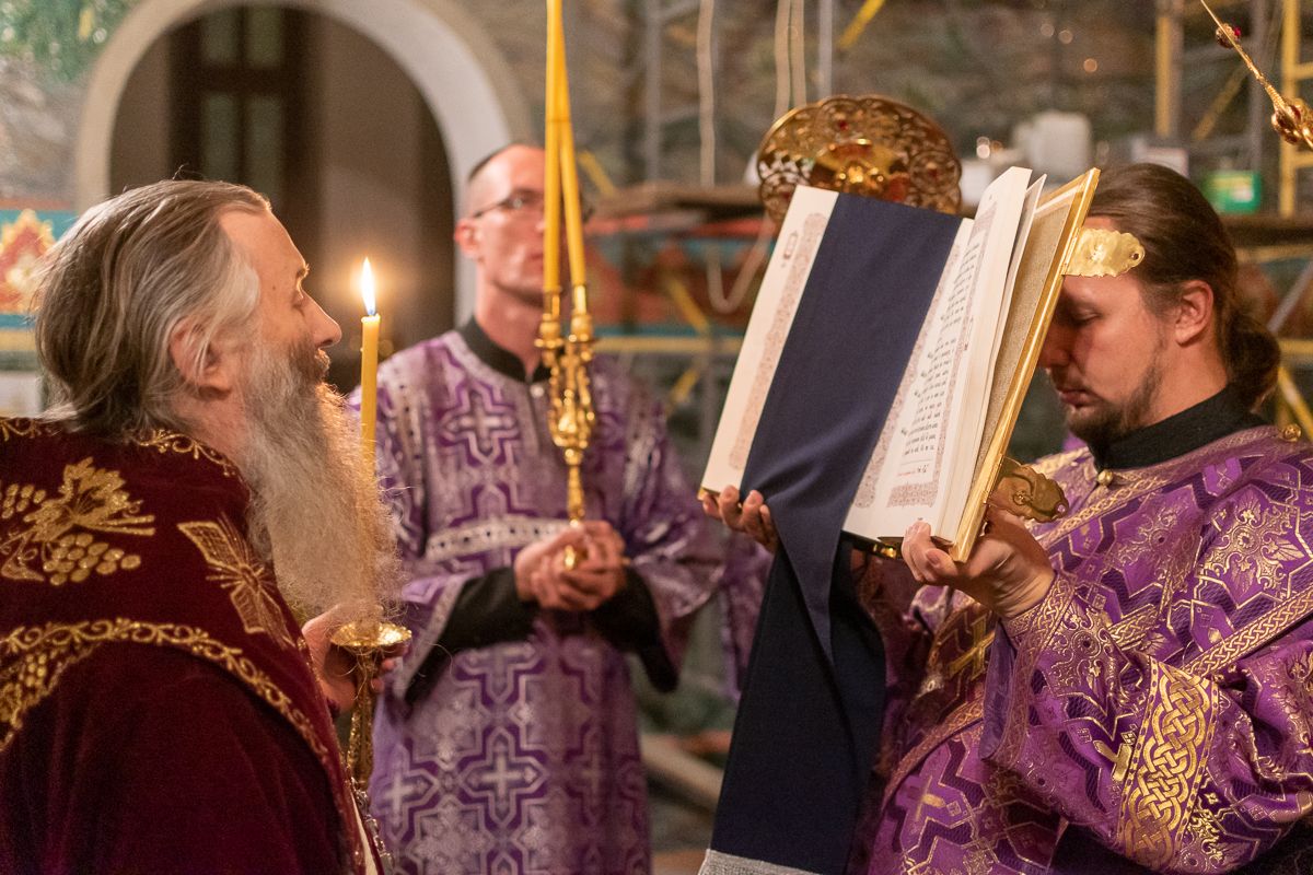 Накануне вечером Владыка возглавил всенощное бдение с чином Воздвижения Креста в Благовещенском кафедральном соборе.