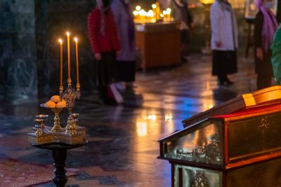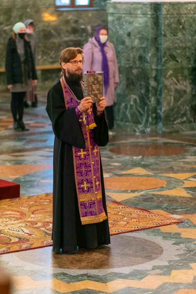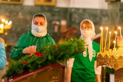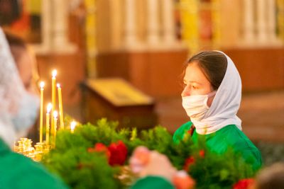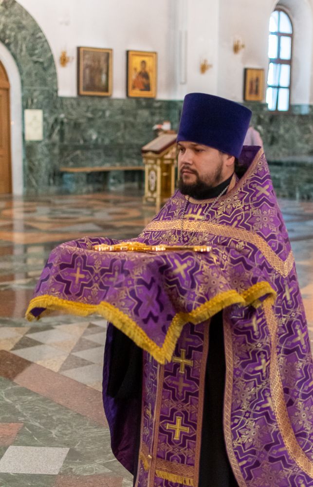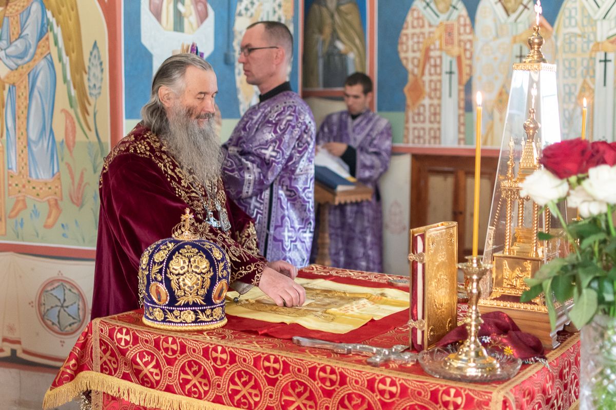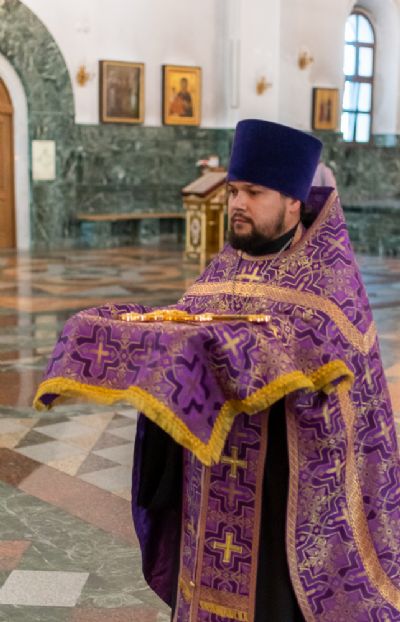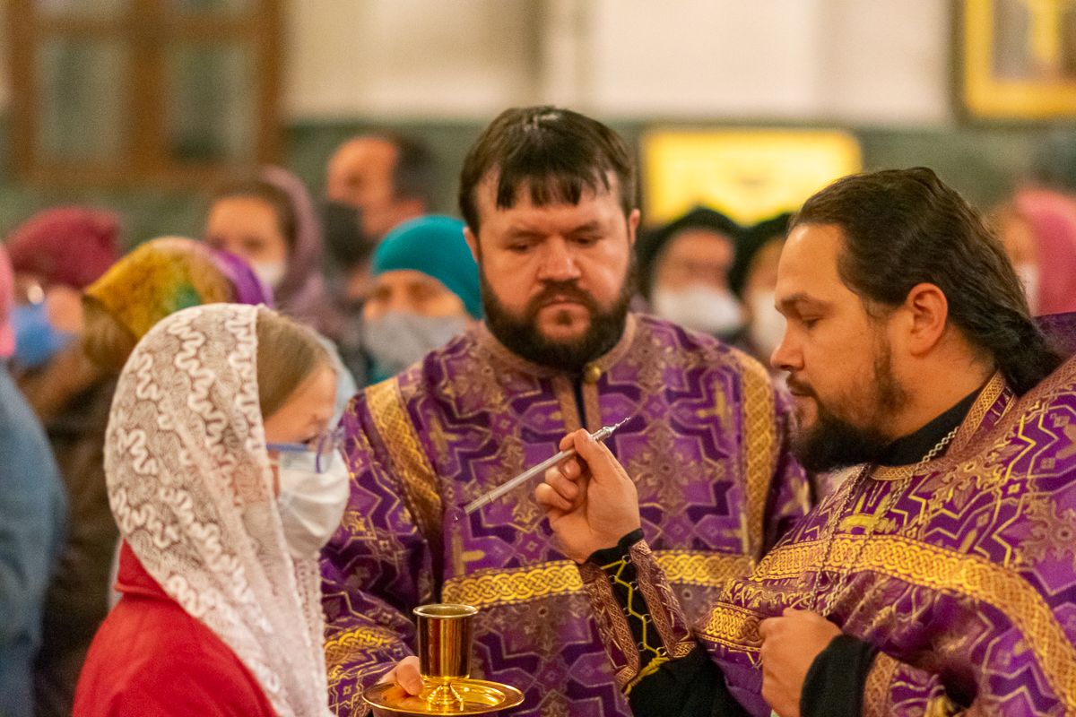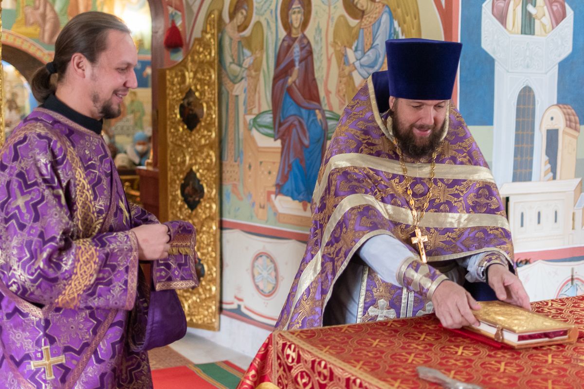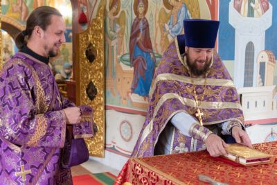 За Литургией архипастырю сослужили благочинный Йошкар-Олинского церковного округа протоиерей Андрей Норкин и клирик Благовещенского собора диакон Игорь Коваль. Богослужение проходило в нижнем приделе Вознесенского собора, освященном в честь Воздвижения Честного и Животворящего Креста Господня.