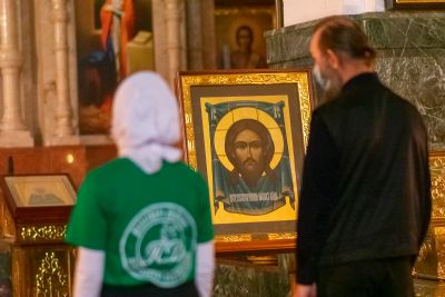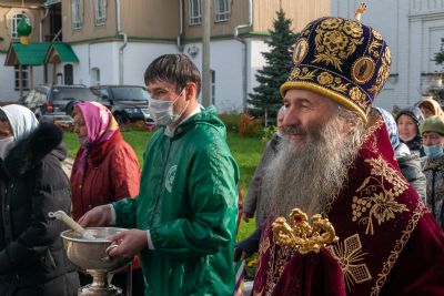 После Литургии по традиции престольных праздников прошел крестный ход вокруг собора с чтением евангелия и кроплением святой водой. Затем митрополит Иоанн обратился к верующим с проповедью: