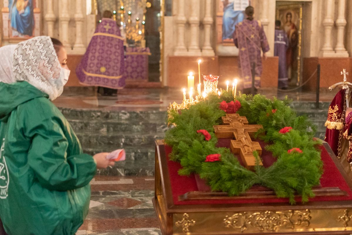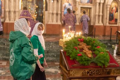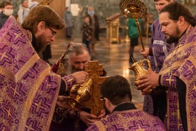 «Сегодня особенный день для всей полноты Церковной – из алтаря за всенощным бдением был изнесен Крест Господень, чтобы утвердить в нас веру. Когда Крест поднимался наверх – это видимый образ того, что Господь призывает всех нас к Небесам, следуя за Ним и с благодарностью принимая все, что посылает Господь для нашего спасения.