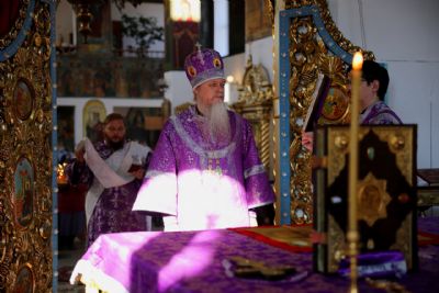 Накануне вечером Владыка возглавил здесь же всенощное бдение. Архипастырю сослужило духовенство храма, пел хор под управлением Тимофея Протасова.
