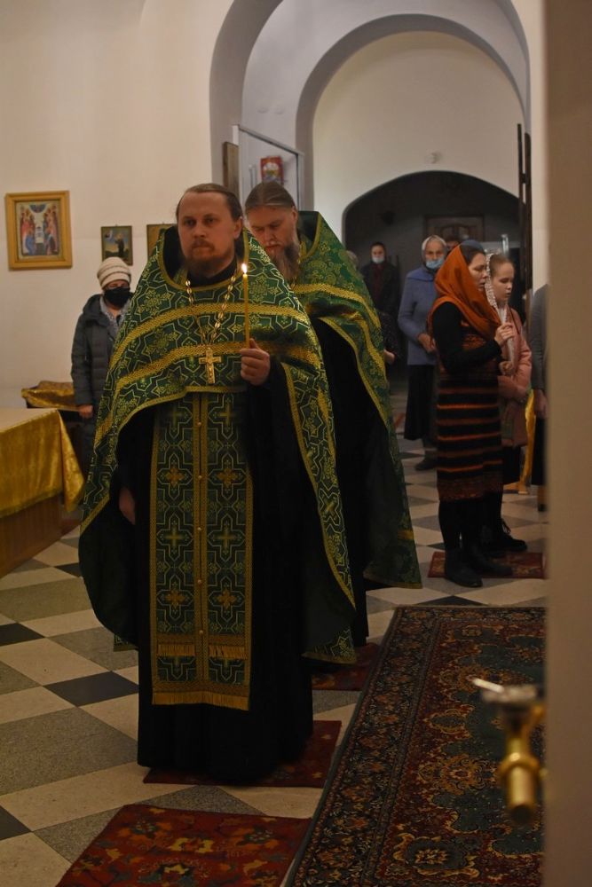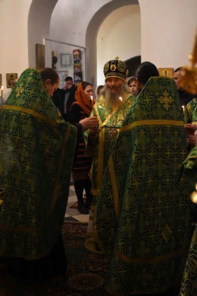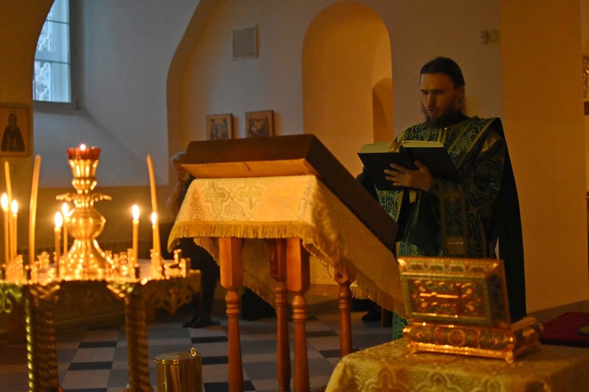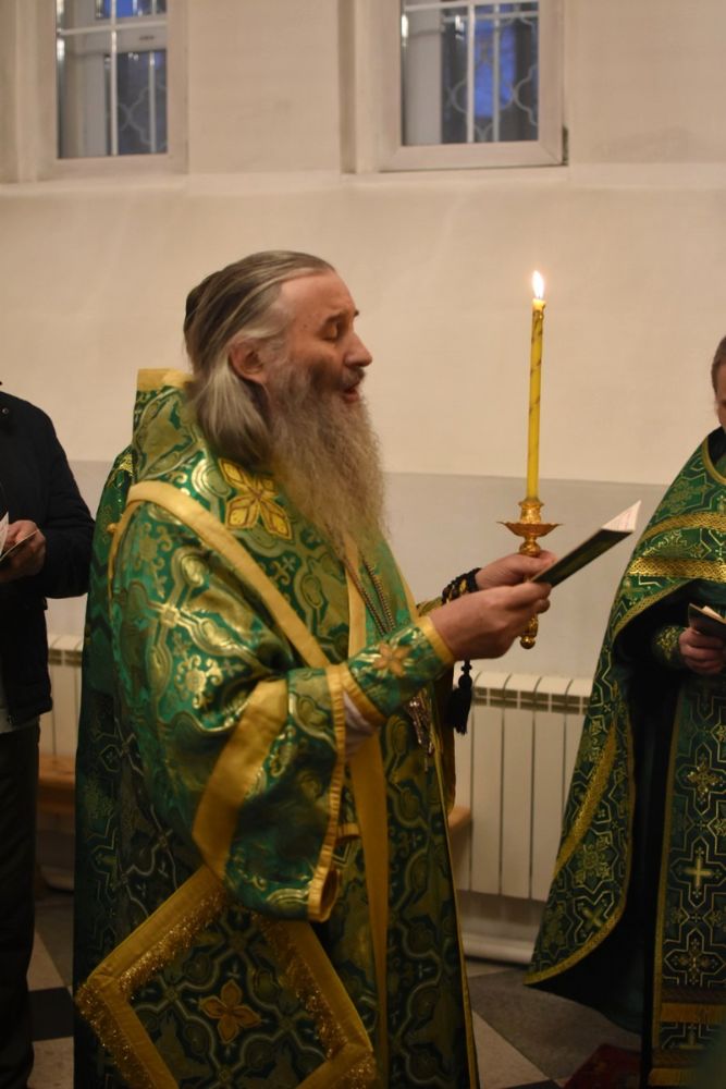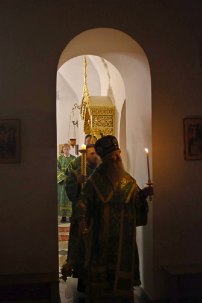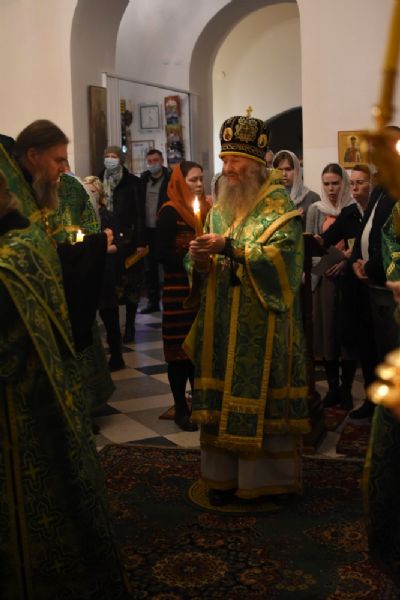 Владыке сослужили настоятель храма протоиерей Александр Бачурин, клирики храма протоиерей Василий Лихачев, иереи Константин Домрачев, Николай Бабич, диакон Димитрий Лукьянов и клирик храма Рождества Пресвятой Богородицы с. Семеновка протодиакон Михаил Козловский. Песнопения исполнял хор храма под управлением регента Елены Умрихиной.