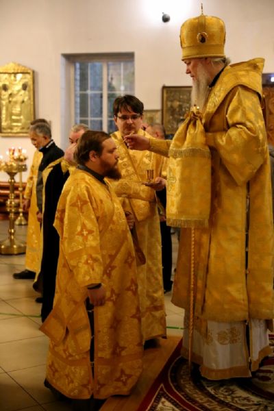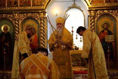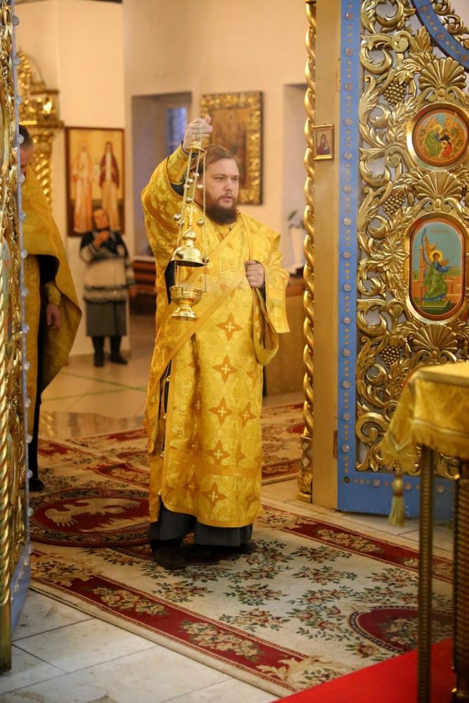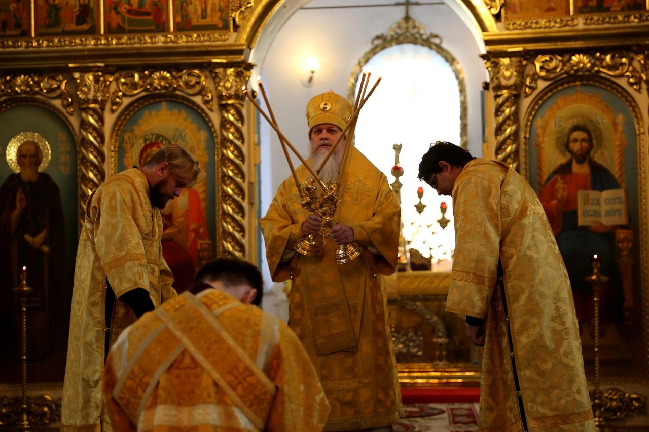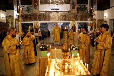Его Преосвященству сослужило духовенство собора, пел хор под управлением Тимофея Протасова.
