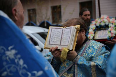 По окончании Литургии состоялся крестный ход вокруг храма с чтением Евангелия и кроплением святой водой.