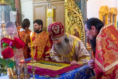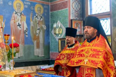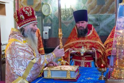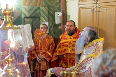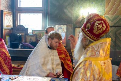 Его Высокопреосвященству сослужили секретарь Йошкар-Олинского епархиального управления иеромонах Серафим (Пасанаев), настоятель Успенского храма протоиерей Сергий Филонов, настоятель храма святителя Николая Мирликийского с. Косолапово протоиерей Александр Милютин, клирики Успенского храма иерей Алексий Михеев, иерей Александр Староверов, диакон Александр Мельников и клирик храма Рождества Пресвятой Богородицы с. Семеновка протодиакон Михаил Козловский.
