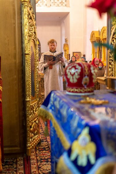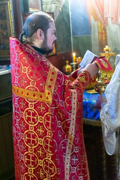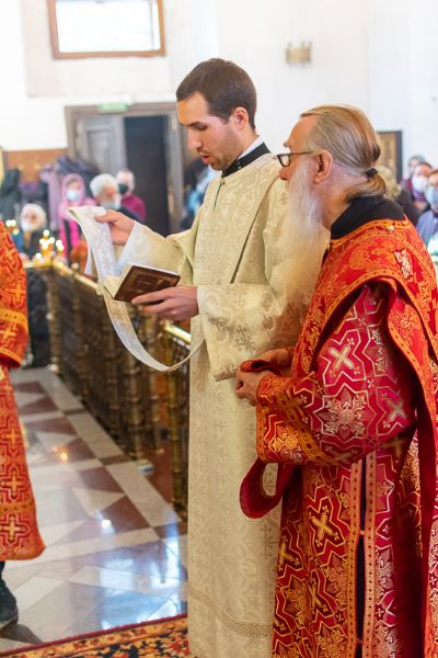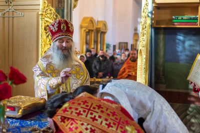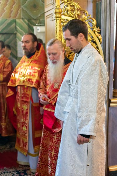После Евхаристического канона митрополит Иоанн рукоположил в диаконский чин иподиакона Ивана Милютина. Сорокоуст диакон Иоанн будет проходить в Благовещенском кафедральном соборе.
