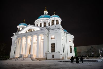 Напомним, что 25 ноября в ходе рабочего совещания, посвящённого вопросам росписи Казанского собора, члены комиссии по воссозданию росписи храма провели приём альфрейных и живописных работ на центральном куполе Казанского собора и в парусах под барабаном центрального купола. В настоящее время продолжается роспись люнетов, западной конхи и малых куполов. Завершение работ по росписи, как и всех работ на объекте, по графику планируется в мае 2021 года.