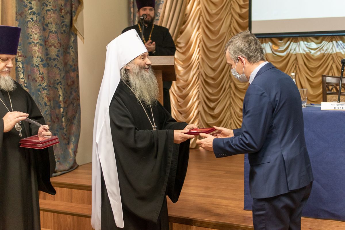 Затем митрополит Иоанн вручил награды сотрудникам Аппарата Президента Республики Татарстан, церковнослужителям и меценатам Казанской епархии.