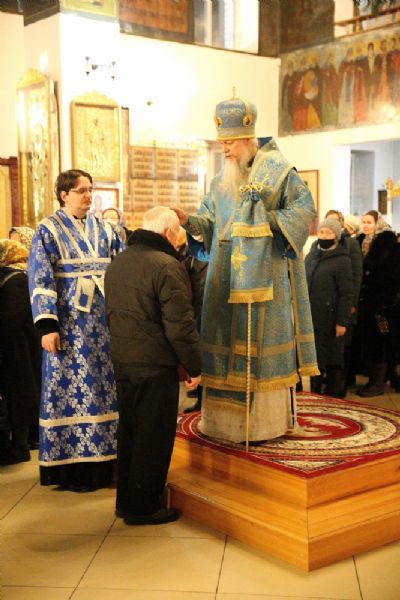 После богослужения епископ Феофан обратился к прихожанам с архипастырским словом, напомнив исторические события праздника, известные из Священного Предания: