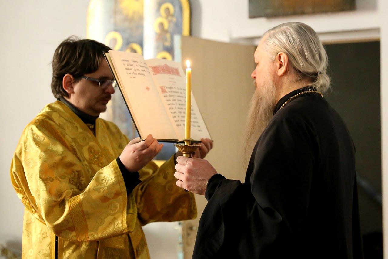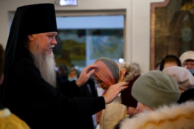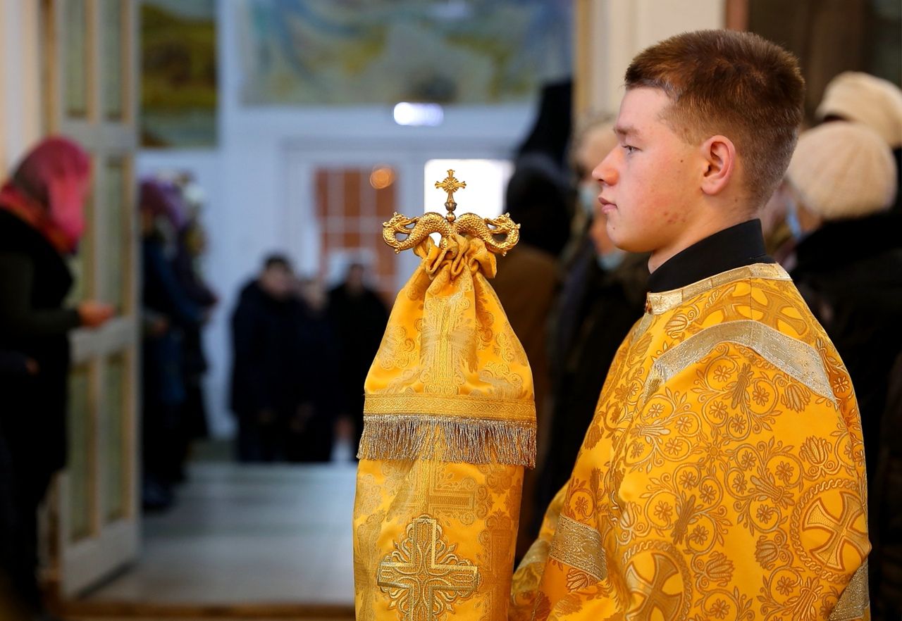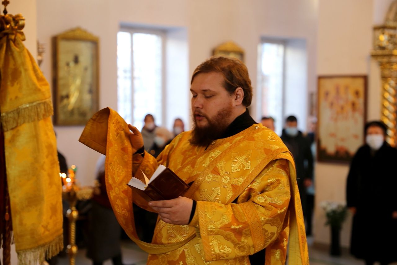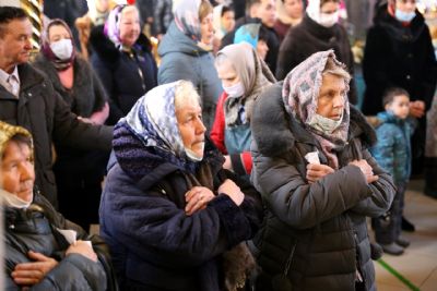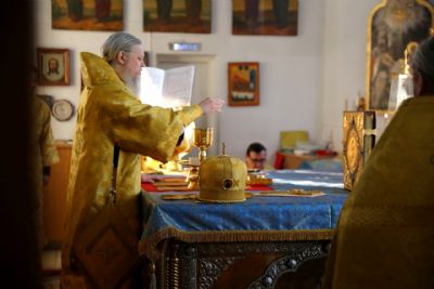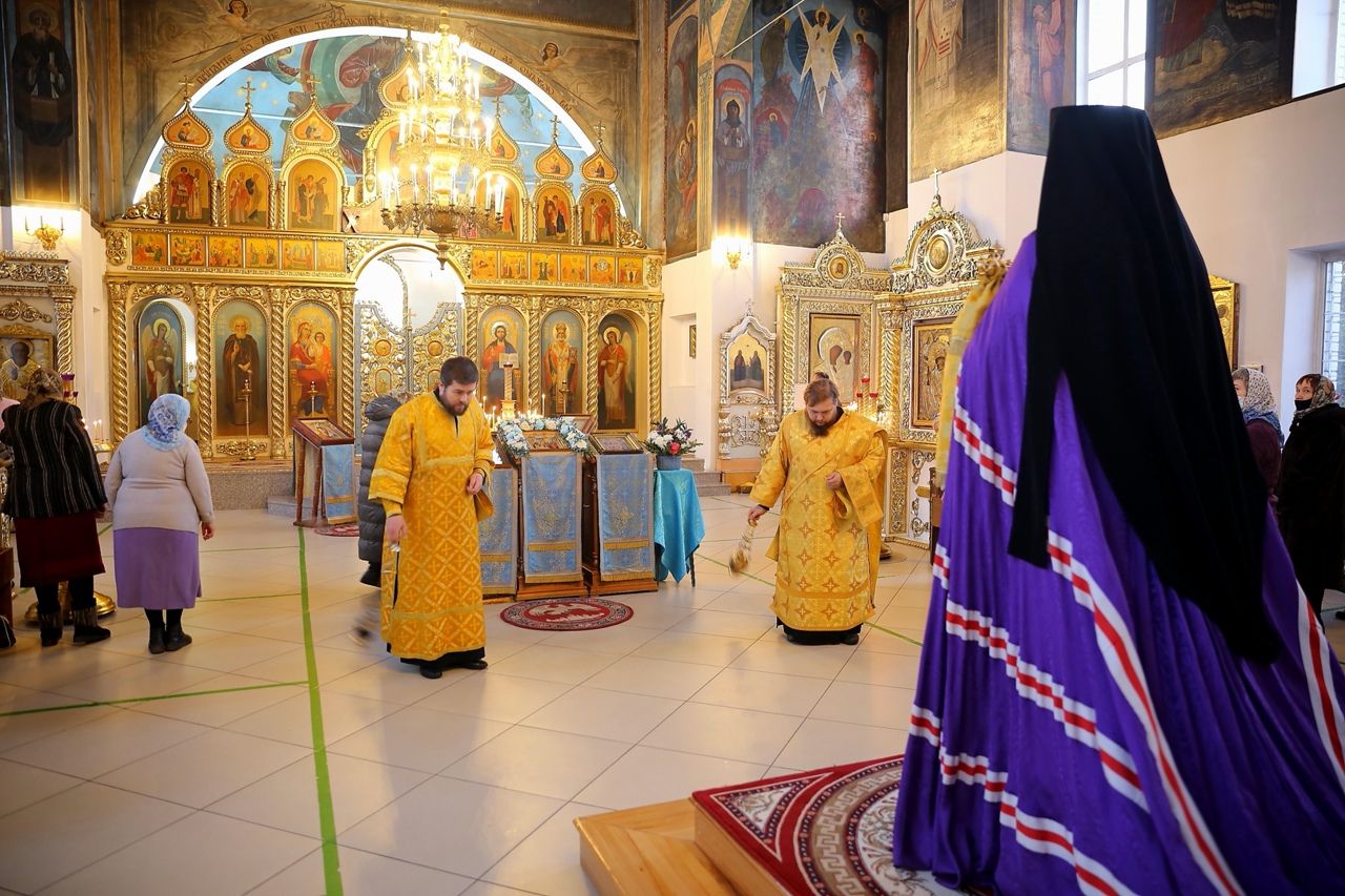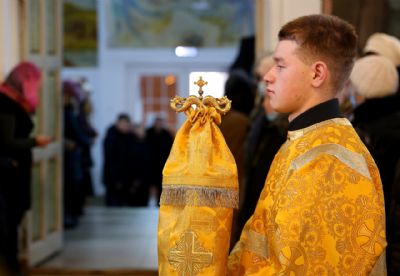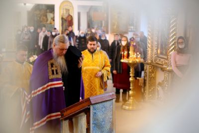 По сугубой ектении были произнесены прошения о мире на Украине и молитва во время распространения вредоносного поветрия.