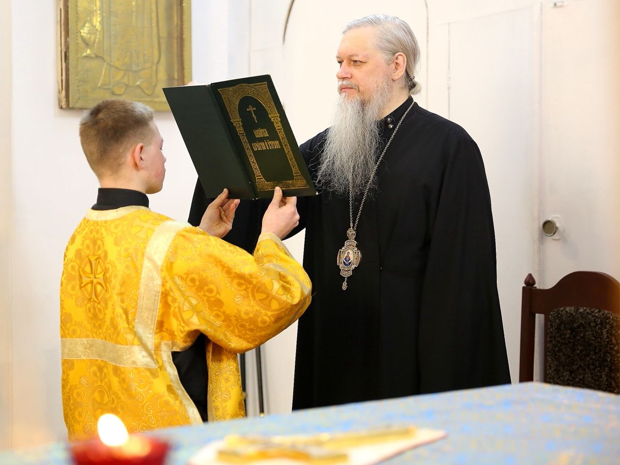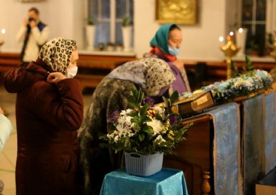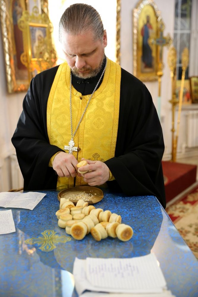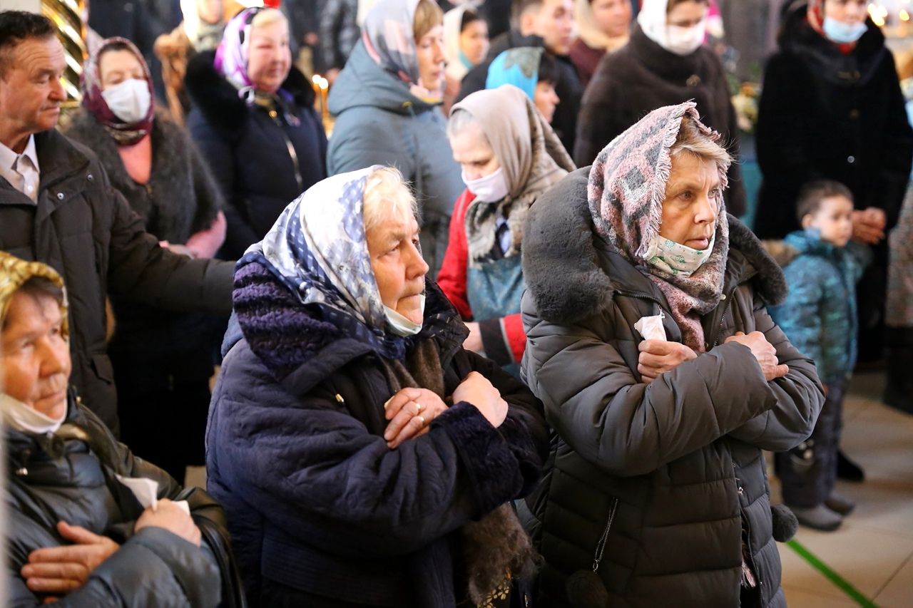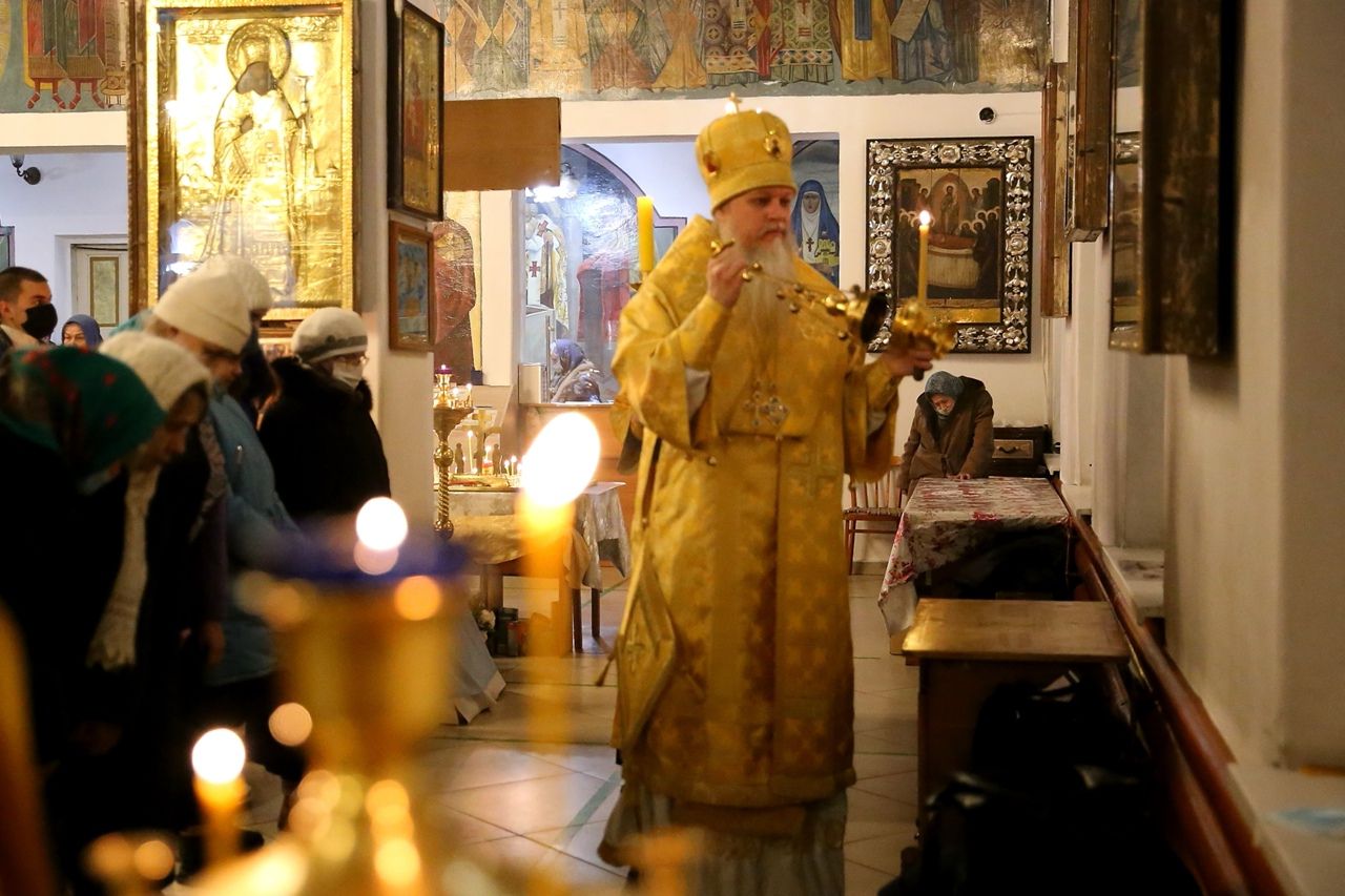 По сугубой ектении были произнесены прошения о мире на Украине и молитва во время распространения вредоносного поветрия.