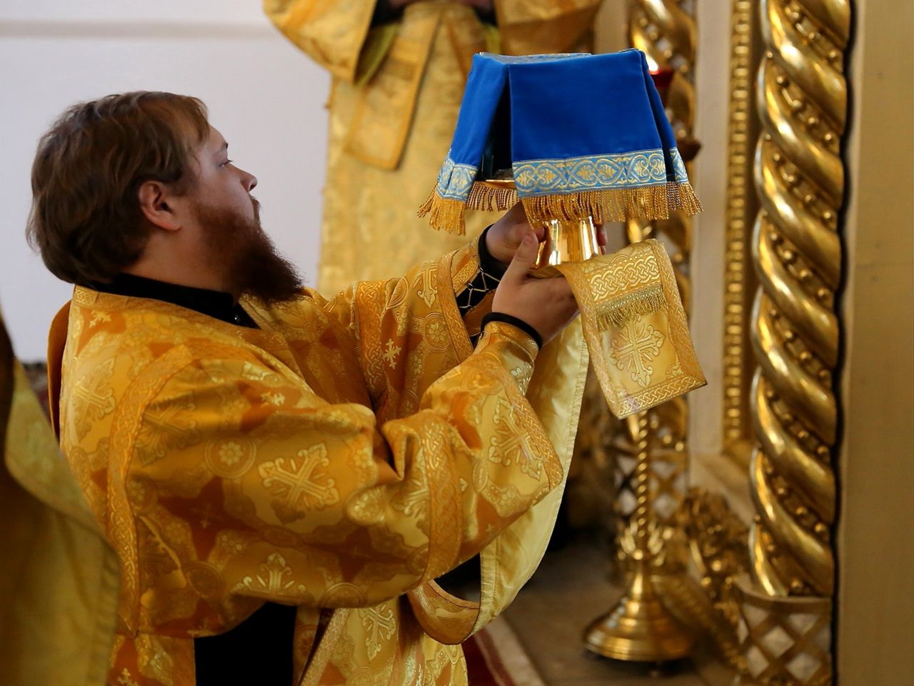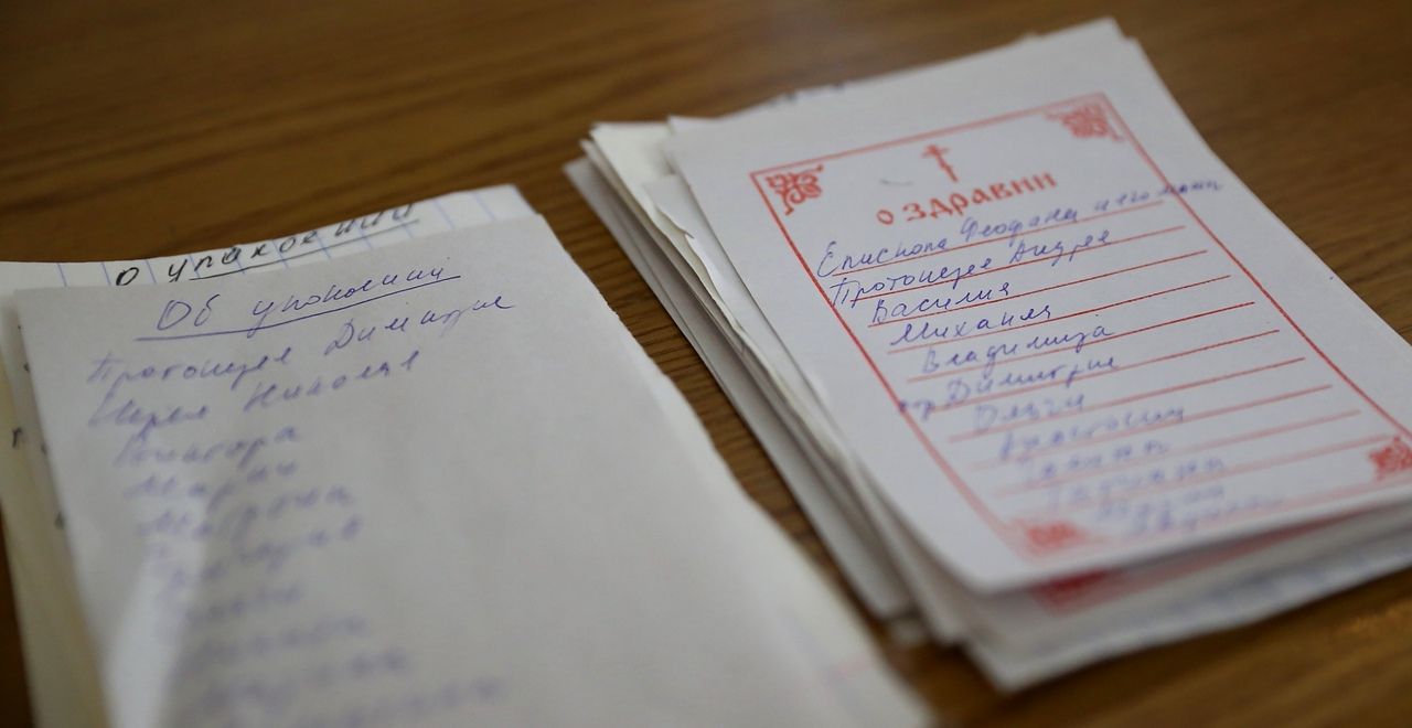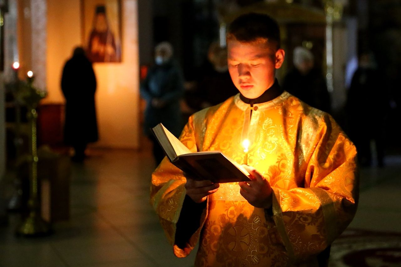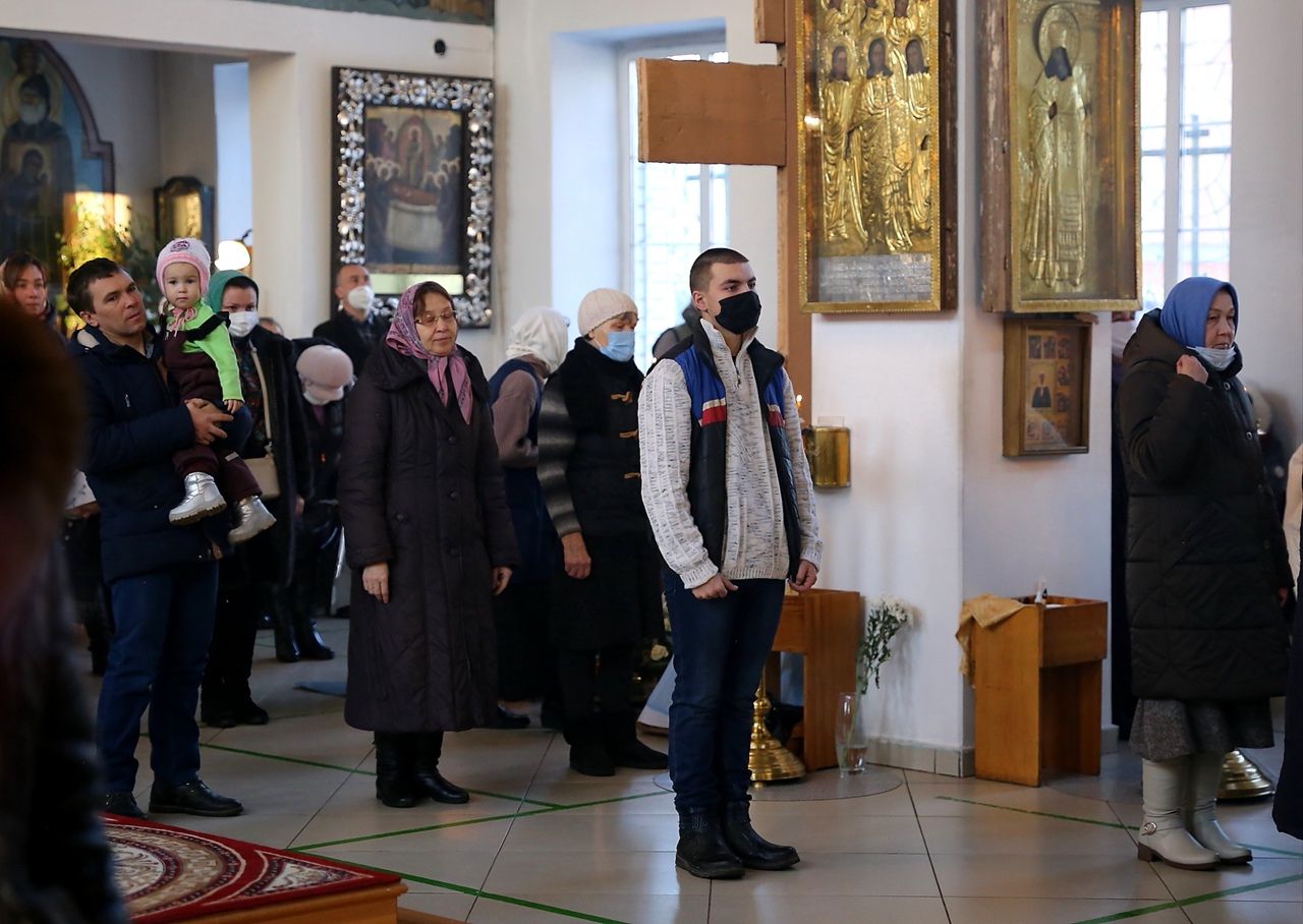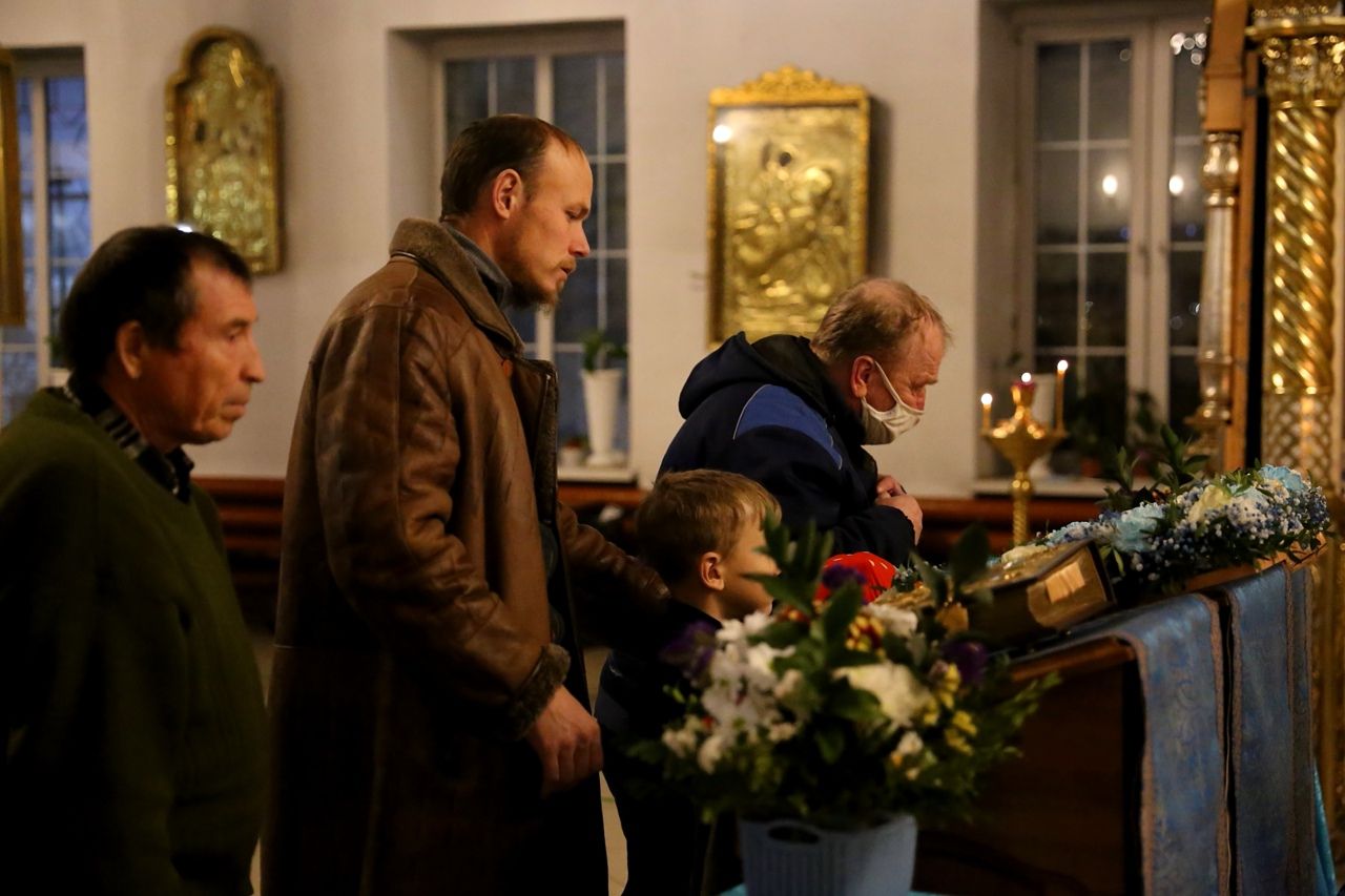 По сугубой ектении были произнесены прошения о мире на Украине и молитва во время распространения вредоносного поветрия.