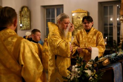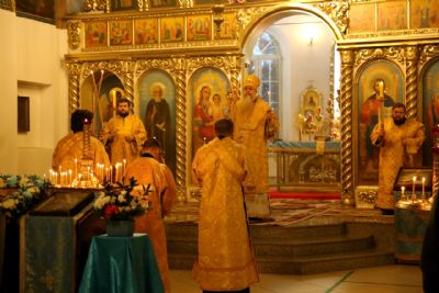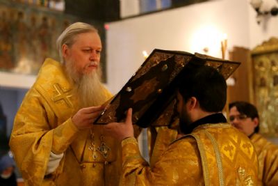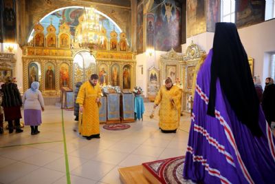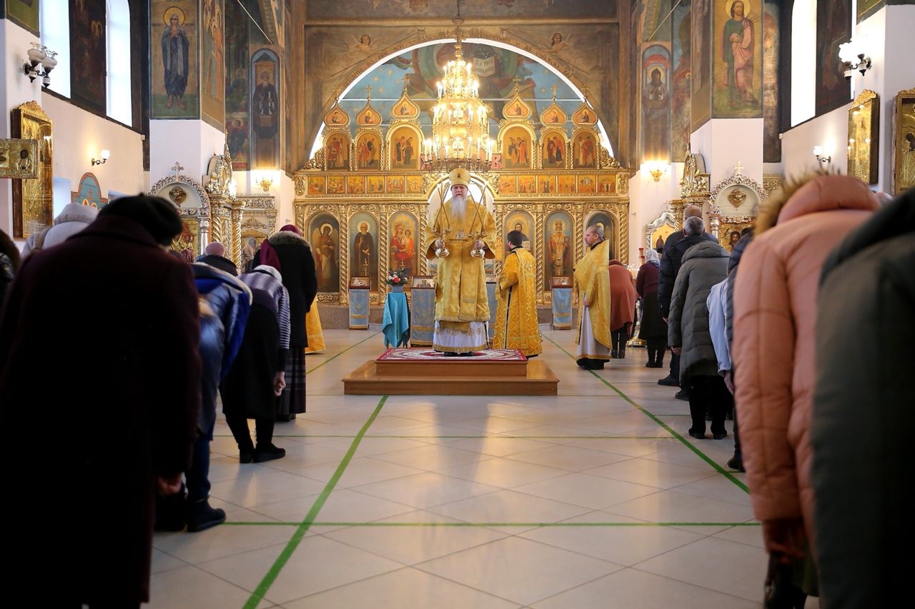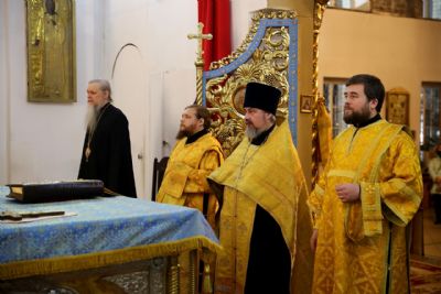 Его Преосвященству сослужило духовенство собора. За богослужением пел соборный хор.