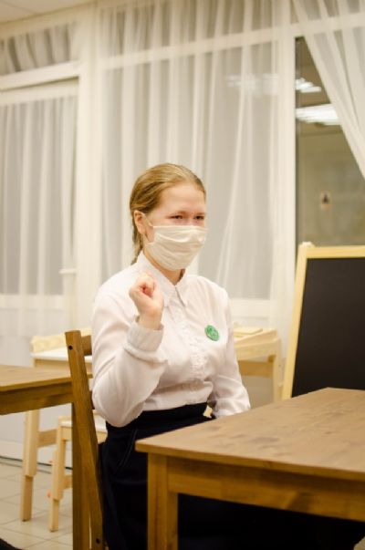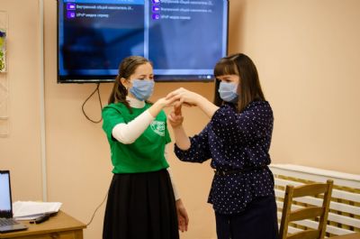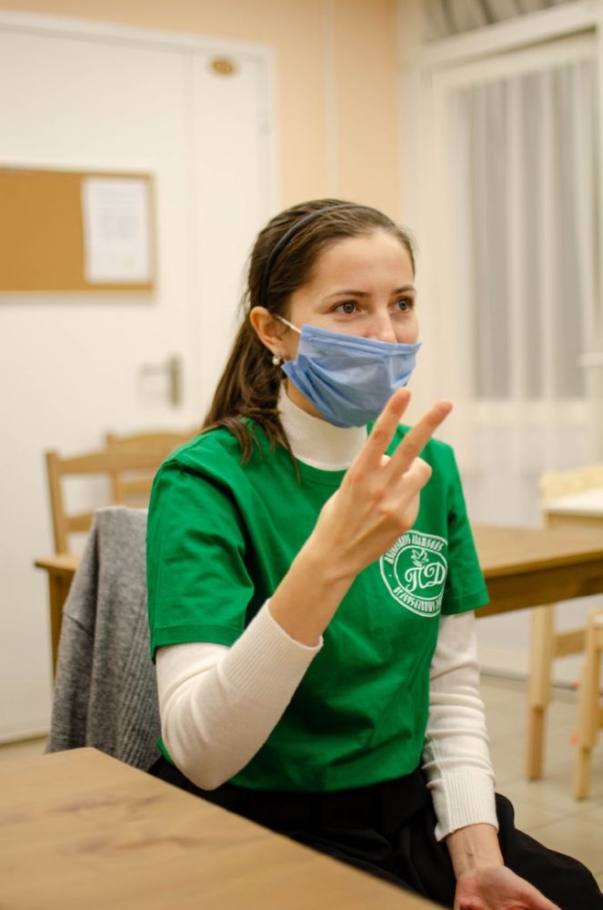 Затем молодые люди ознакомились с видами нарушения слуха, причинами глухоты. Узнали, что в России языком общения глухих и слабослышащих является русский жестовый язык (РЖЯ). Это полноценная лингвистическая система, которая подразделяется на дактилологию (ручную азбуку) и жест.