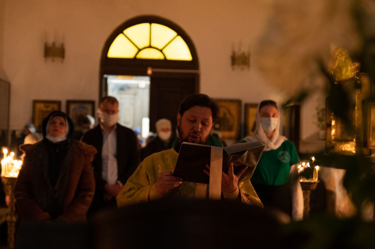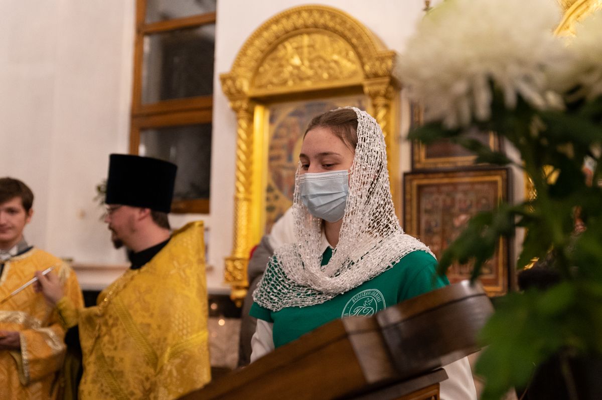 Песнопения исполнял хор под управлением регента Анастасии Филоновой. На богослужении помогали Православные добровольцы.