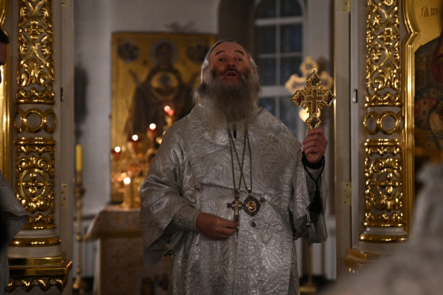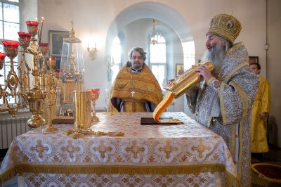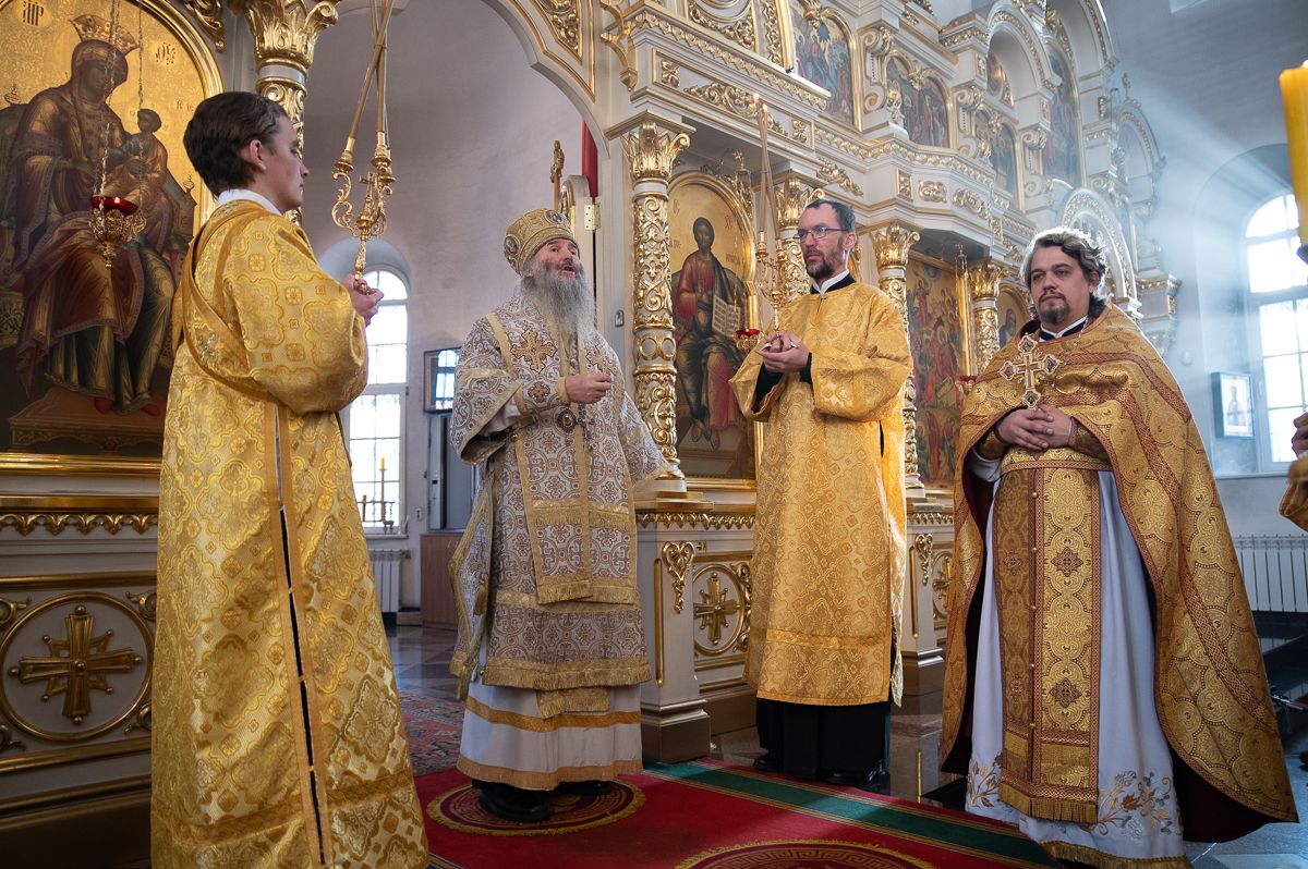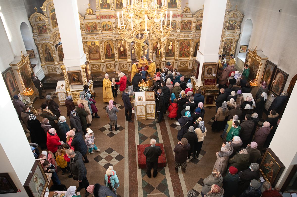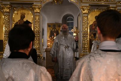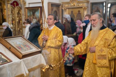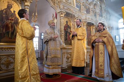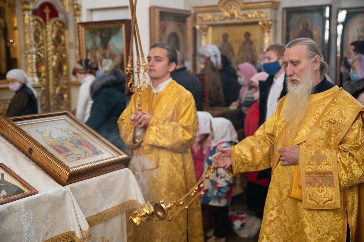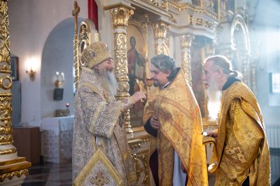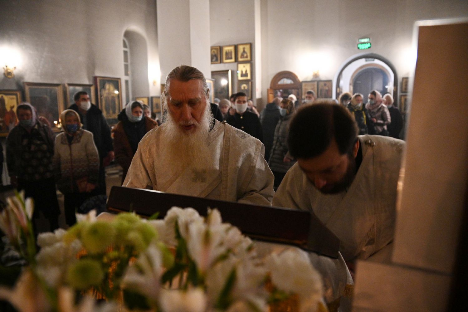 Его Высокопреосвященству сослужили настоятель храма иерей Александр Лоскутов и клирик храма Рождества Пресвятой Богородицы протодиакон Михаил Козловский. Песнопения исполнял хор храма под управлением регента Любови Торощиной.