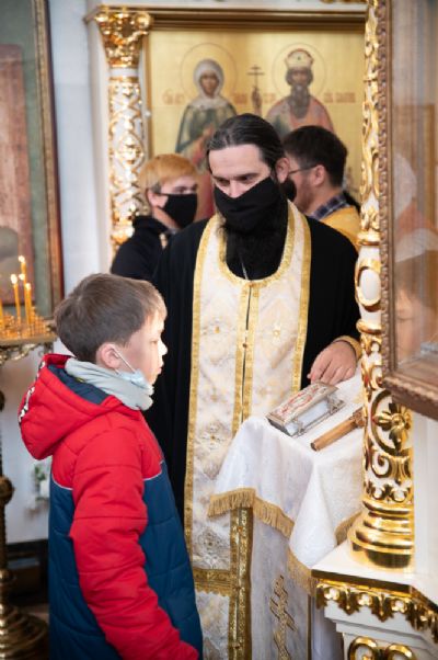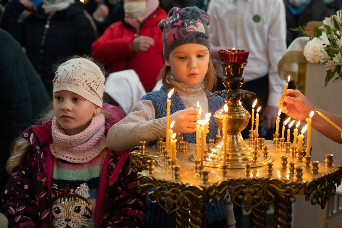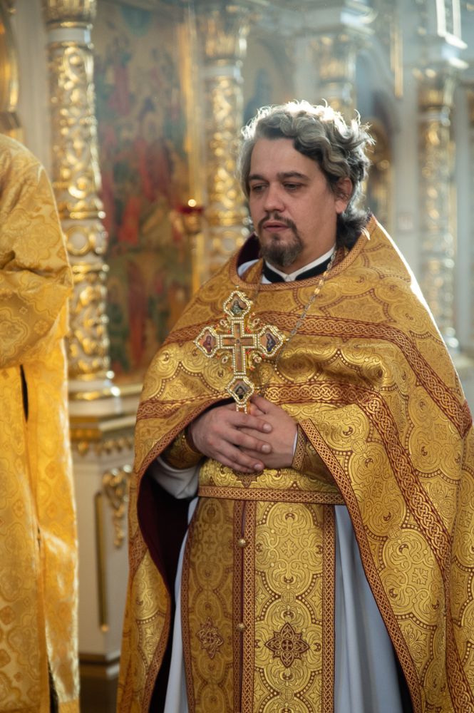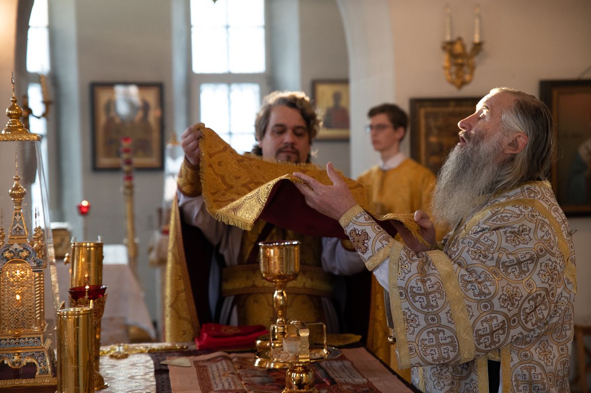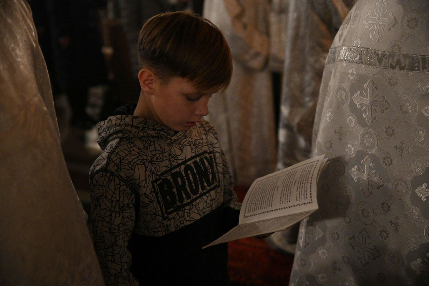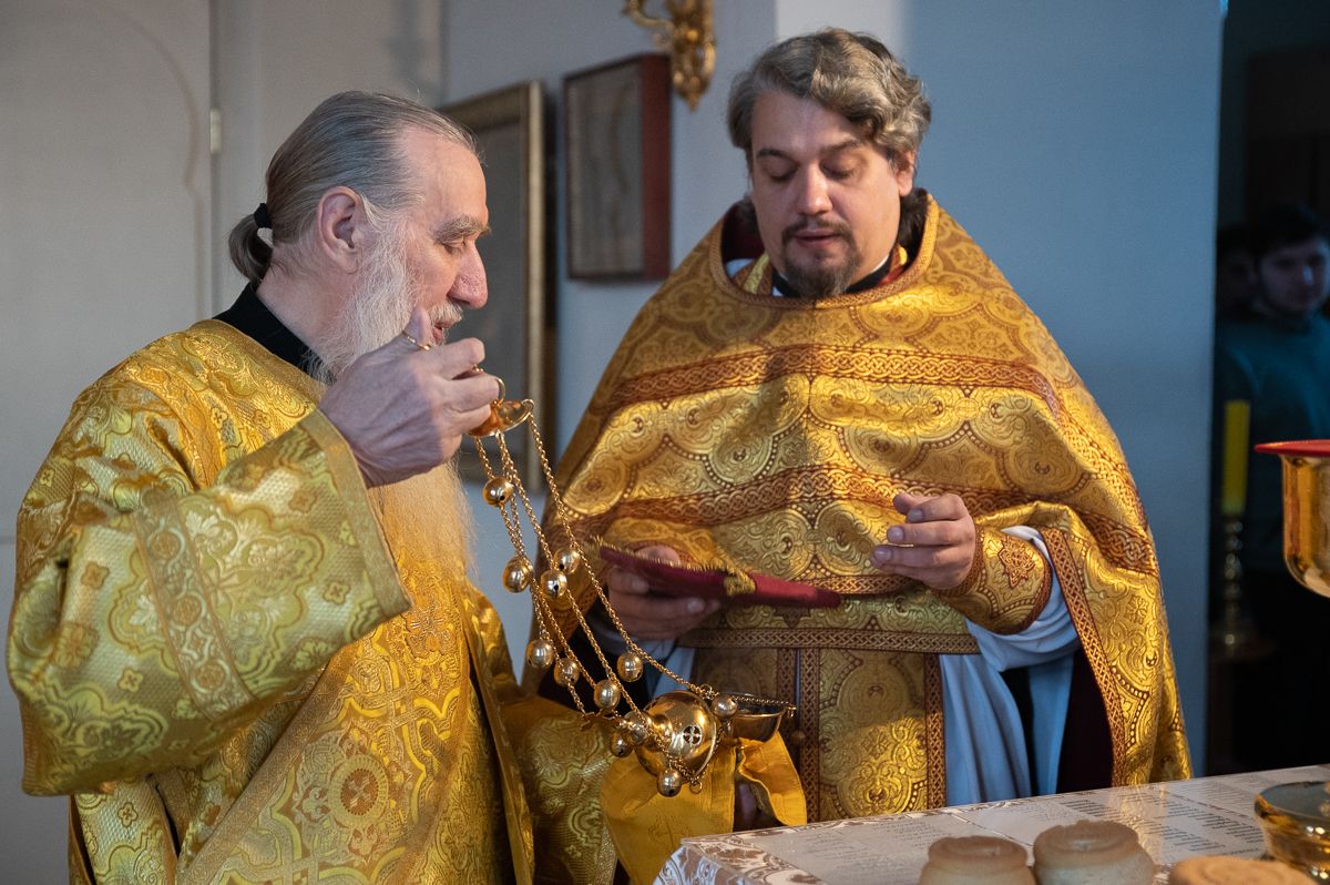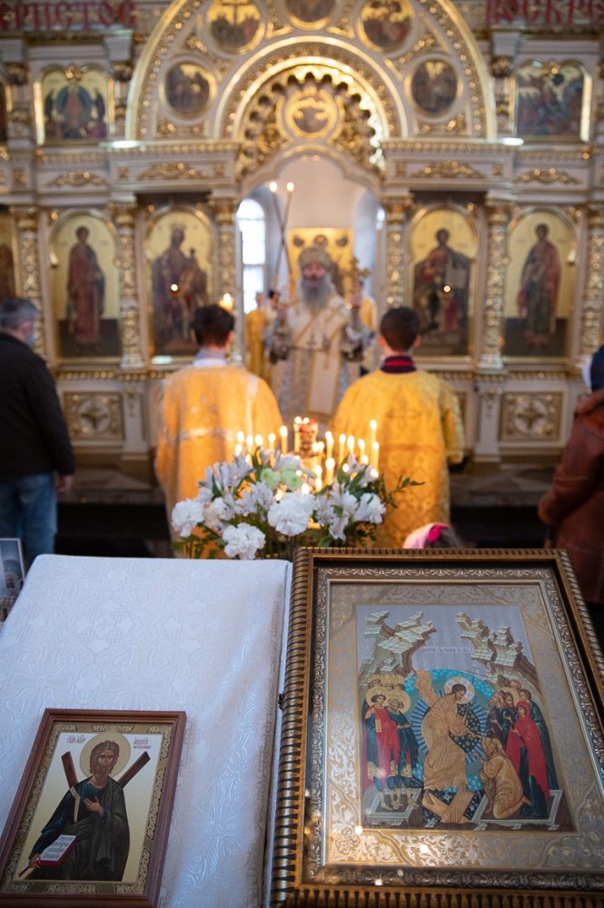 Его Высокопреосвященству сослужили настоятель храма иерей Александр Лоскутов и клирик храма Рождества Пресвятой Богородицы протодиакон Михаил Козловский. Песнопения исполнял хор храма под управлением регента Любови Торощиной.