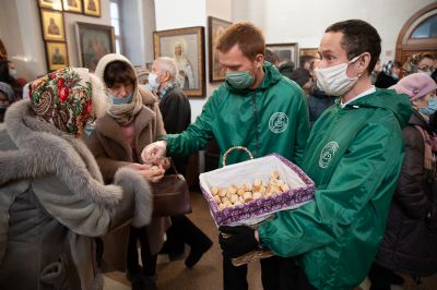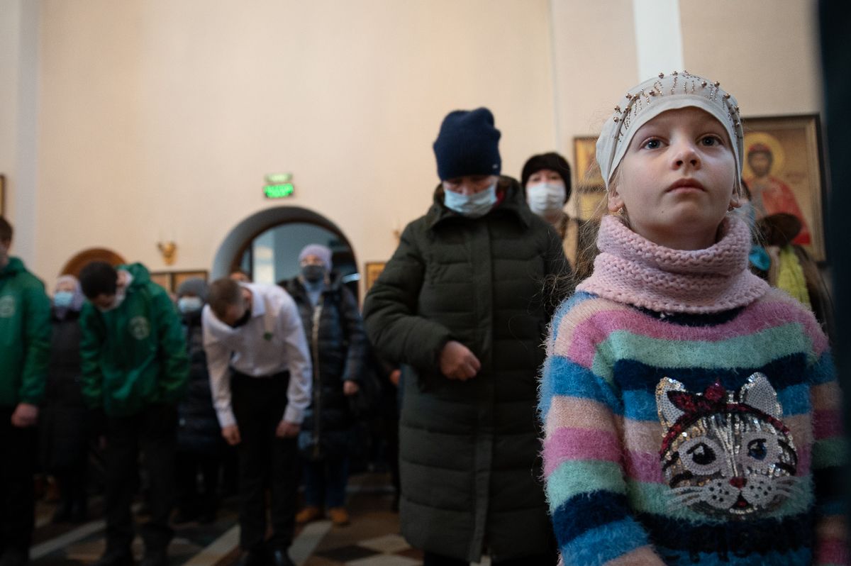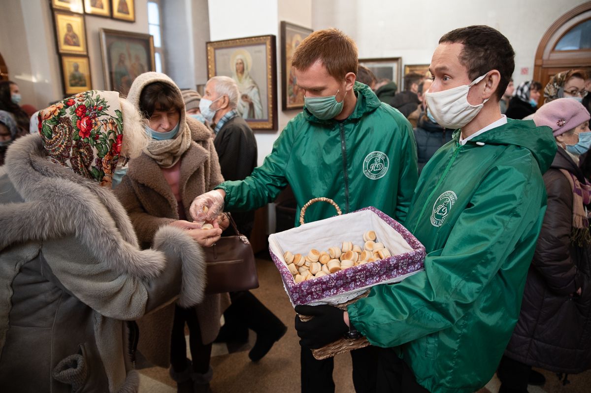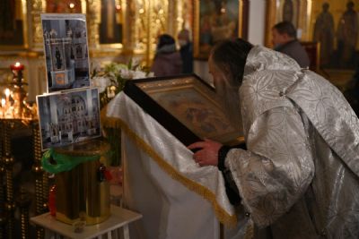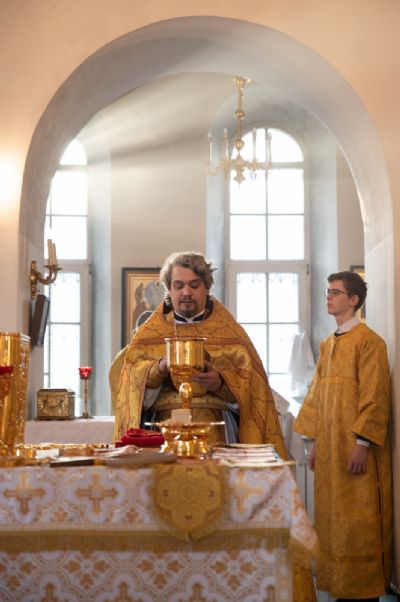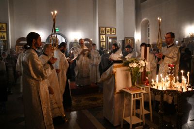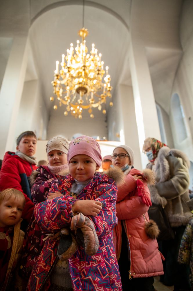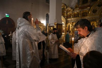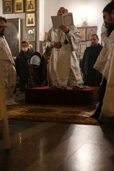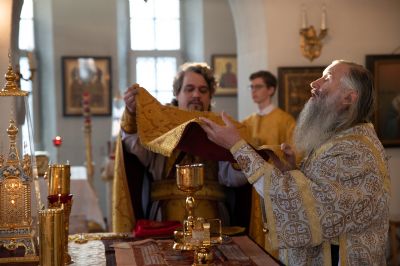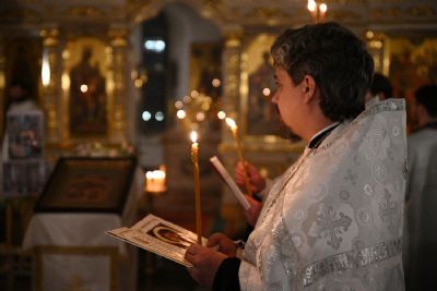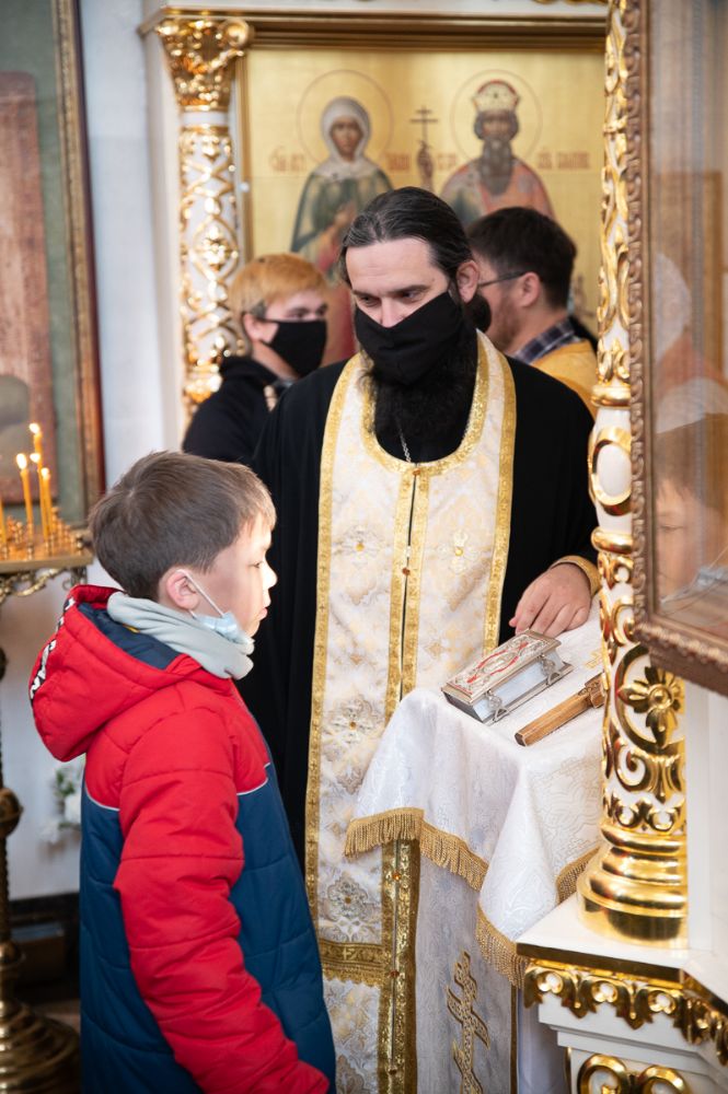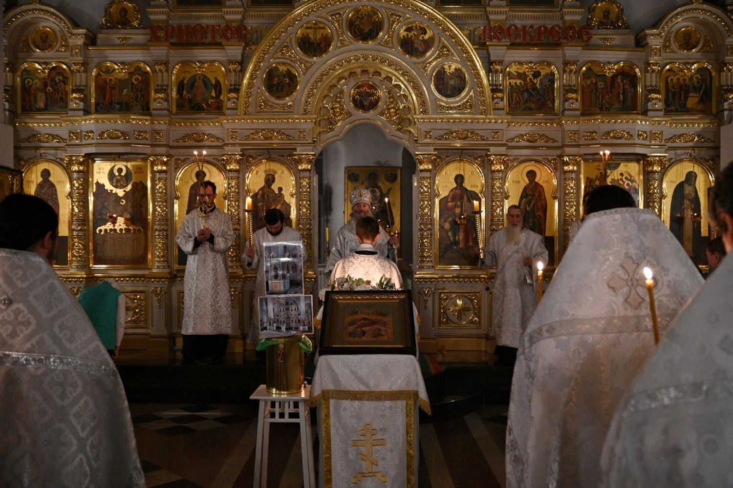 Его Высокопреосвященству сослужили настоятель храма иерей Александр Лоскутов и клирик храма Рождества Пресвятой Богородицы протодиакон Михаил Козловский. Песнопения исполнял хор храма под управлением регента Любови Торощиной.