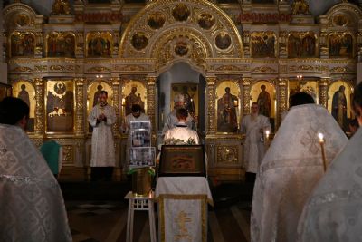 Вечером этого же дня митрополит Иоанн возглавил в храме Рождества Христова молебен с акафистом Иисусу Сладчайшему. Владыке сослужили настоятель храма иерей Александр Лоскутов, клирики храма иереи Никита Смирнов, Димитрий Дьяков, Евгений Симаков, диакон Артемий Бобоч и клирик храма Рождества Пресвятой Богородицы протодиакон Михаил Козловский. Акафист вместе со священством пели все прихожане.