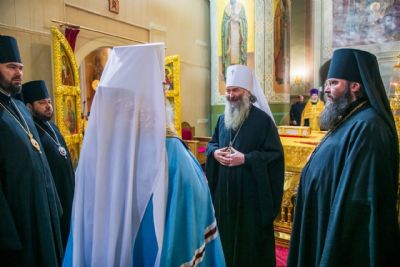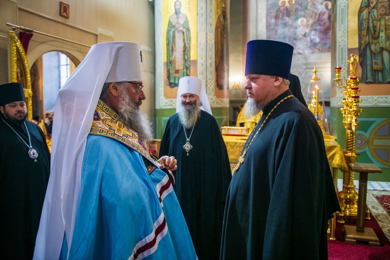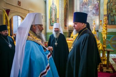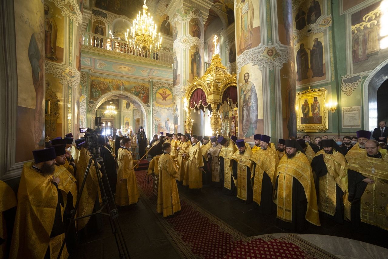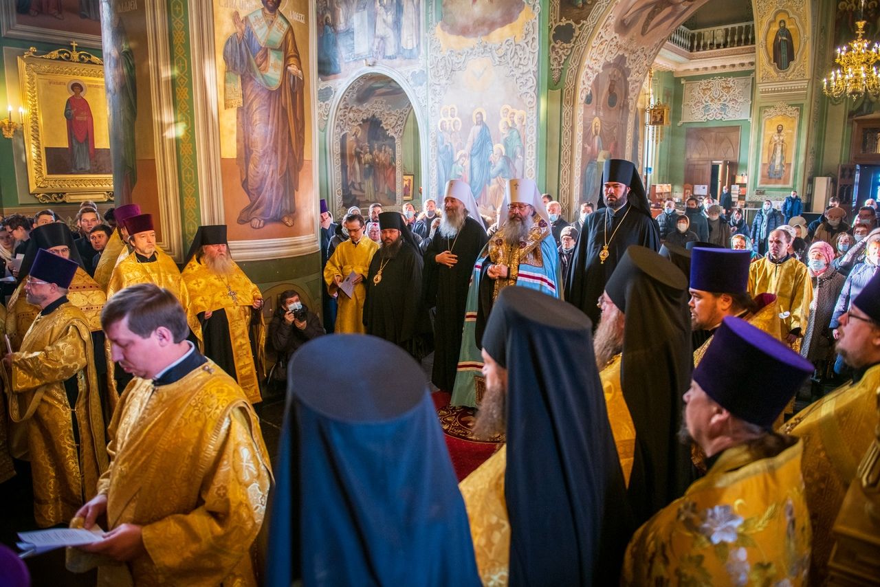 В соборном храме архипастыря встречали митрополит Йошкар-Олинский и Марийский Иоанн, временно управлявший Казанской епархией после кончины митрополита Феофана, преосвященные архипастыри, благочинные, настоятели, наместники и настоятельницы монастырей Казанской епархии.