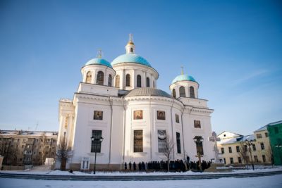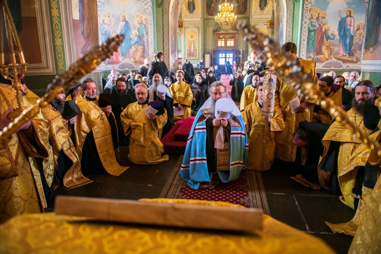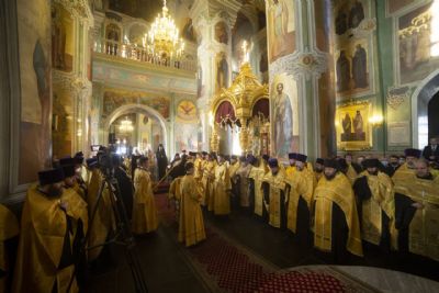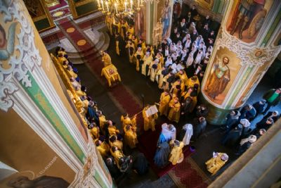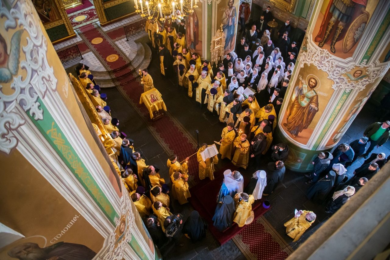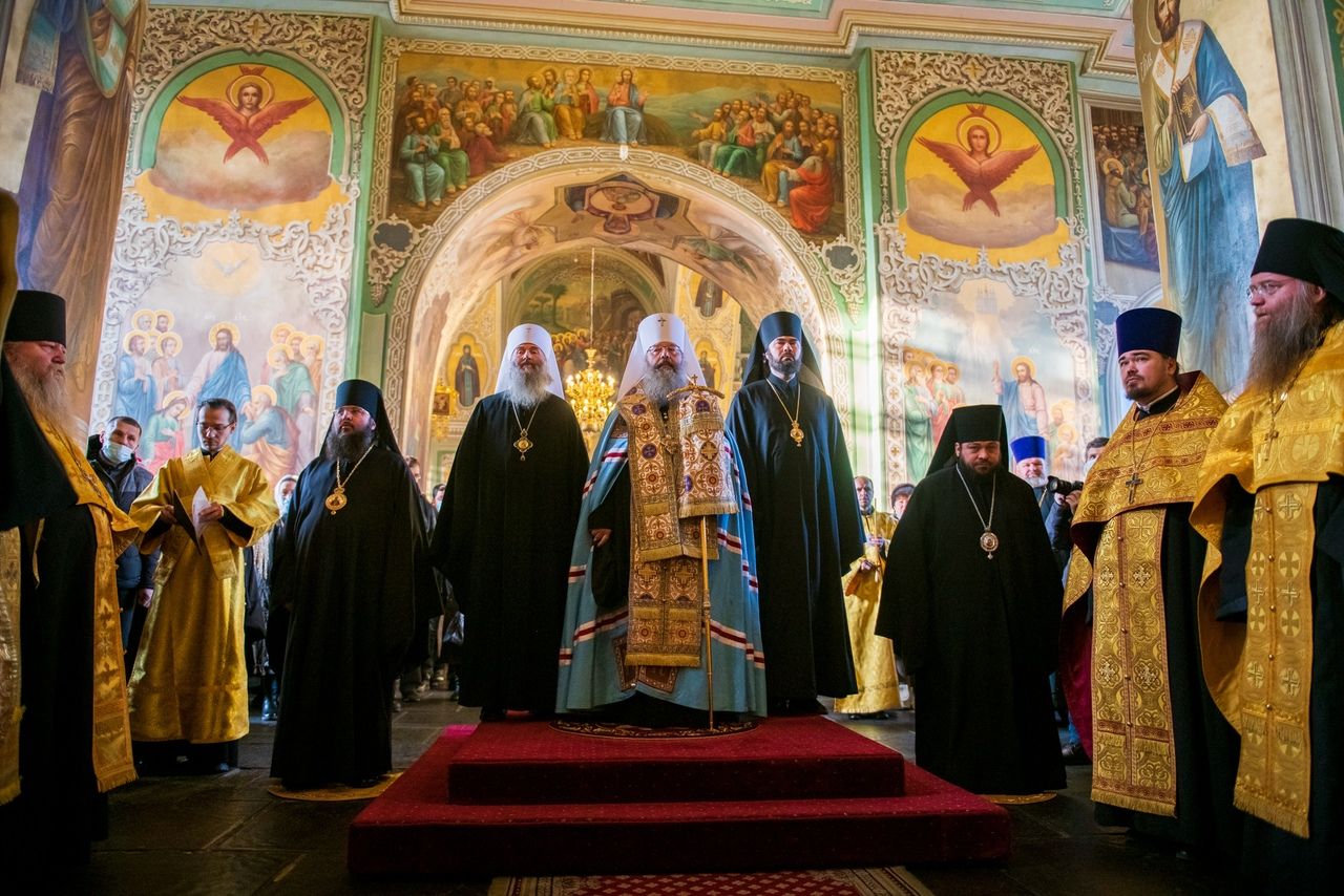 В соборном храме архипастыря встречали митрополит Йошкар-Олинский и Марийский Иоанн, временно управлявший Казанской епархией после кончины митрополита Феофана, преосвященные архипастыри, благочинные, настоятели, наместники и настоятельницы монастырей Казанской епархии.