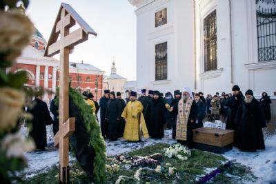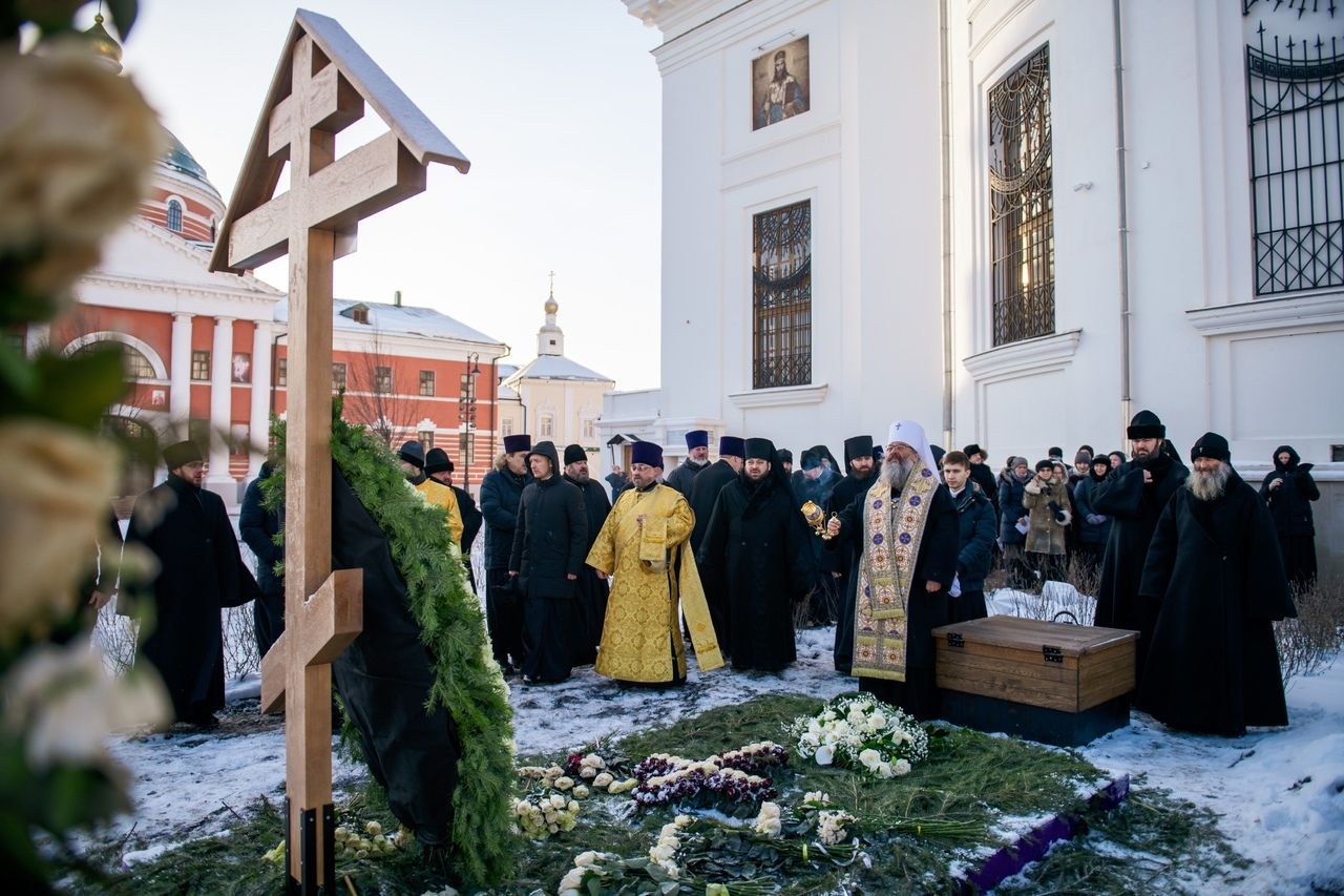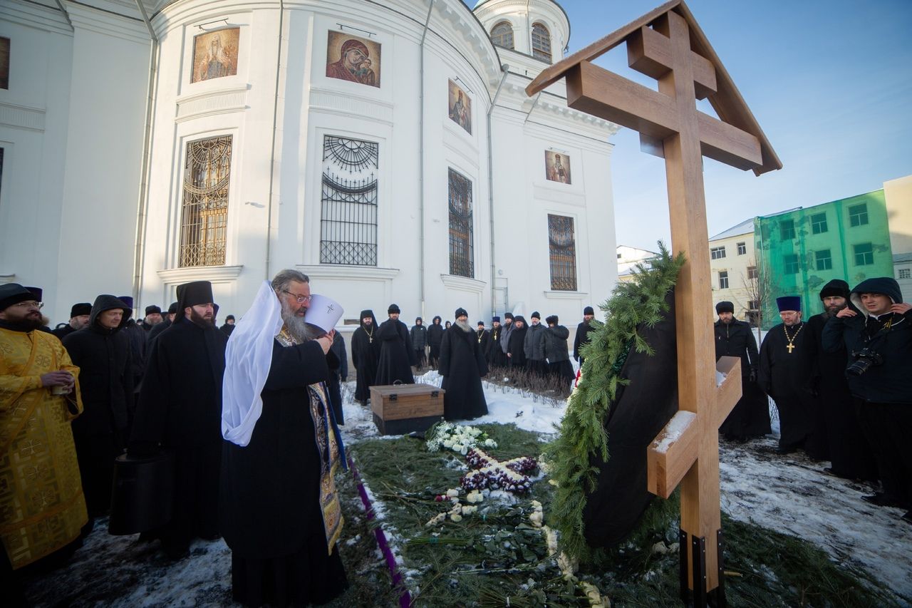 После молебна митрополит Кирилл направился в Казанско-Богородицкий мужской монастырь, где совершил заупокойную литию на месте погребения новопреставленного митрополита Феофана. За богослужением молились митрополит Йошкар-Олинский и Марийский Иоанн, архиереи Татарстанской митрополии, духовенство Казанской епархии, сотрудники епархиального управления. Песнопения исполнялись смешанным монастырским хором под управлением монахини Амвросии (Кочерёжкиной).