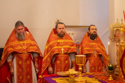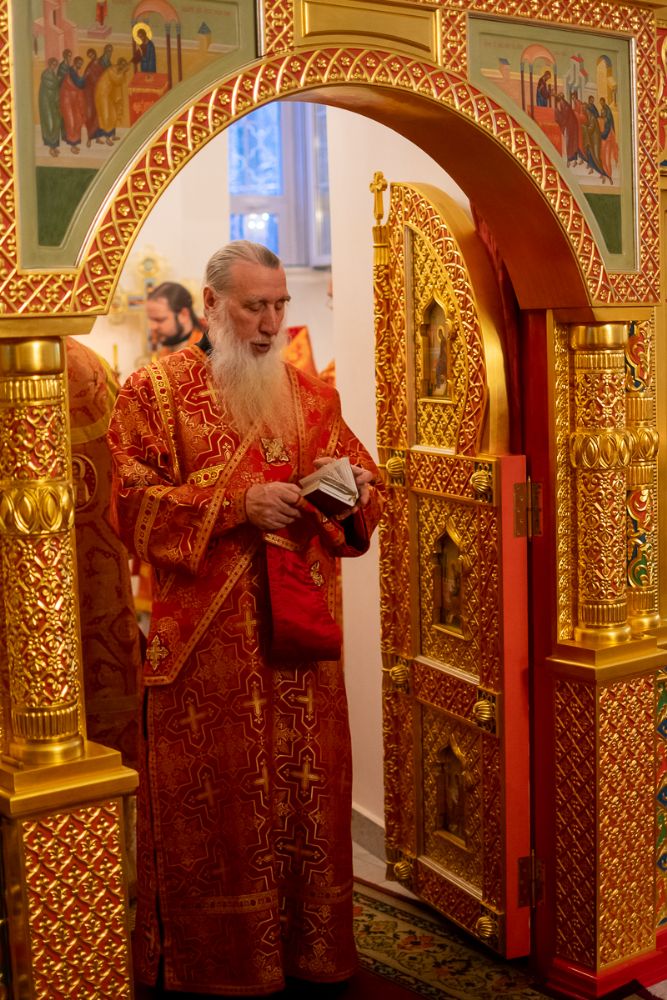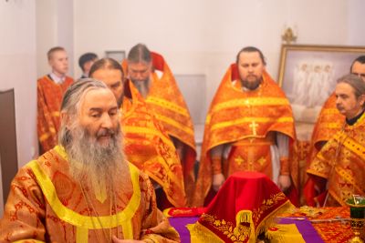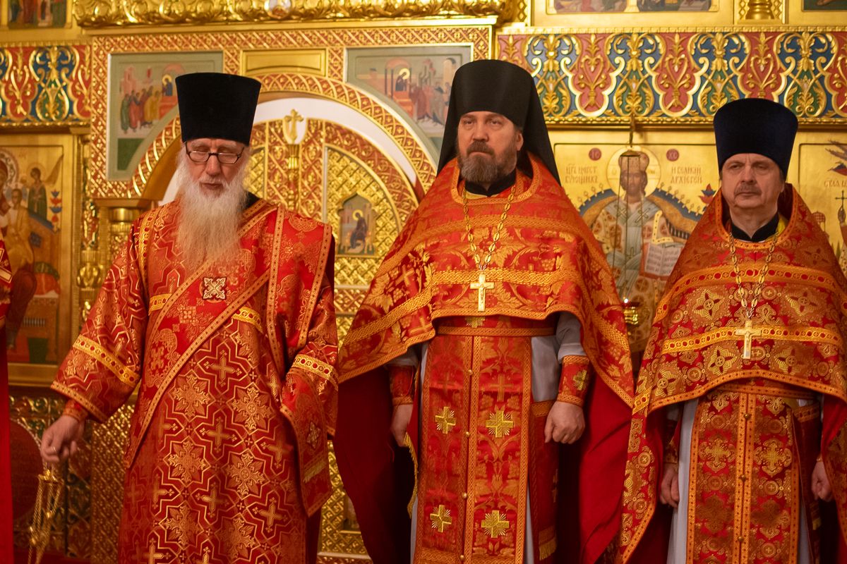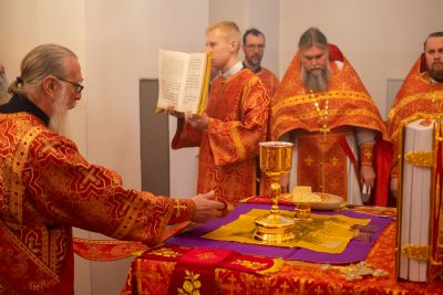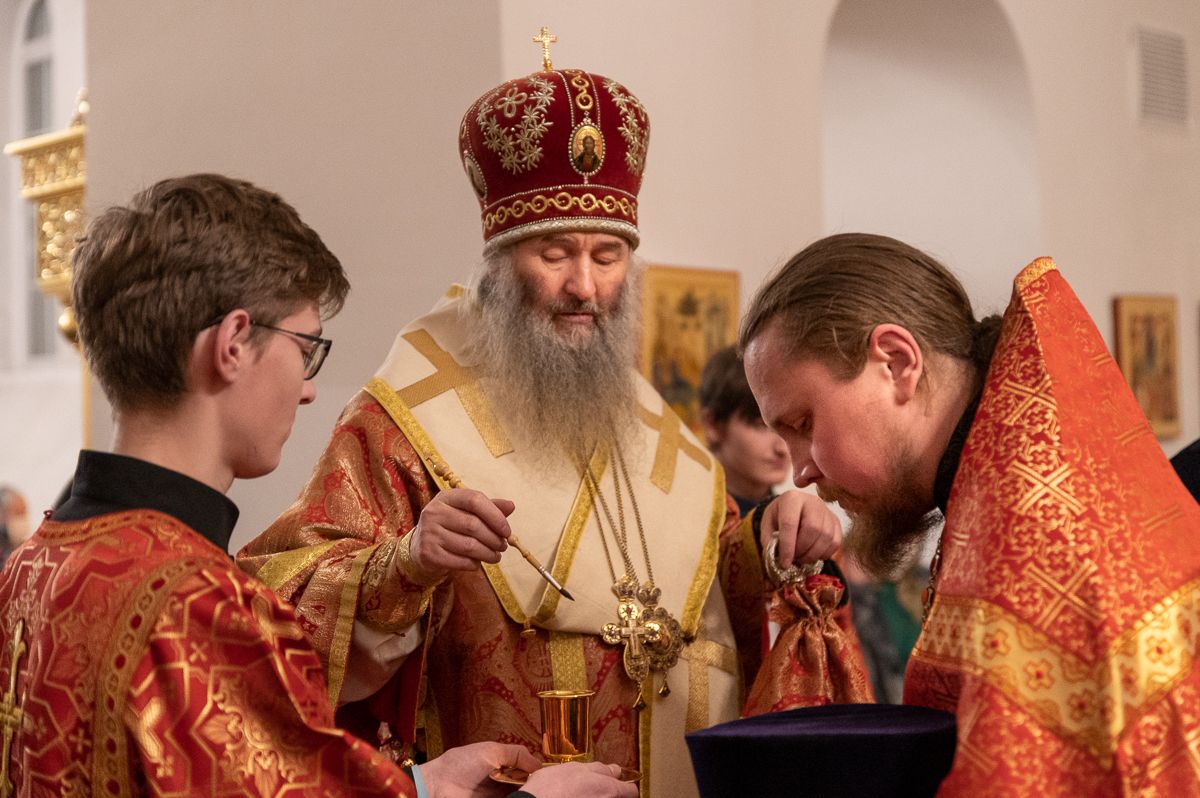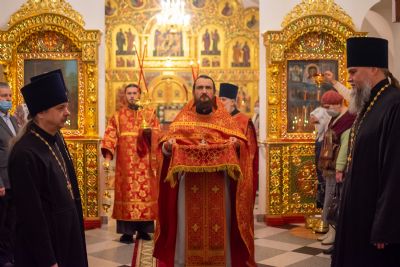За Литургией архипастырю сослужили секретарь Йошкар-Олинского епархиального управления иеромонах Серафим (Пасанаев), настоятель Серафимовского храма протоиерей Александр Бачурин, клирики храма протоиерей Василий Лихачев, иереи Константин Домрачев, Виктор Умрихин, Николай Бабич, диакон Димитрий Лукьянов и клирик храма Рождества Пресвятой Богородицы с. Семеновка протодиакон Михаил Козловский. Песнопения исполнял хор под управлением регента Елены Умрихиной.