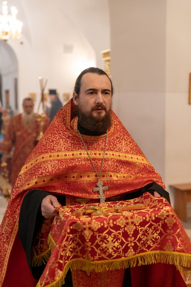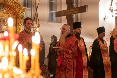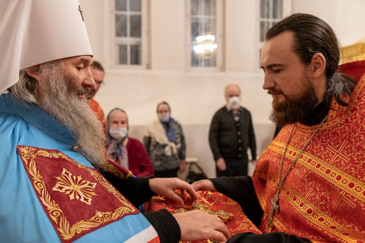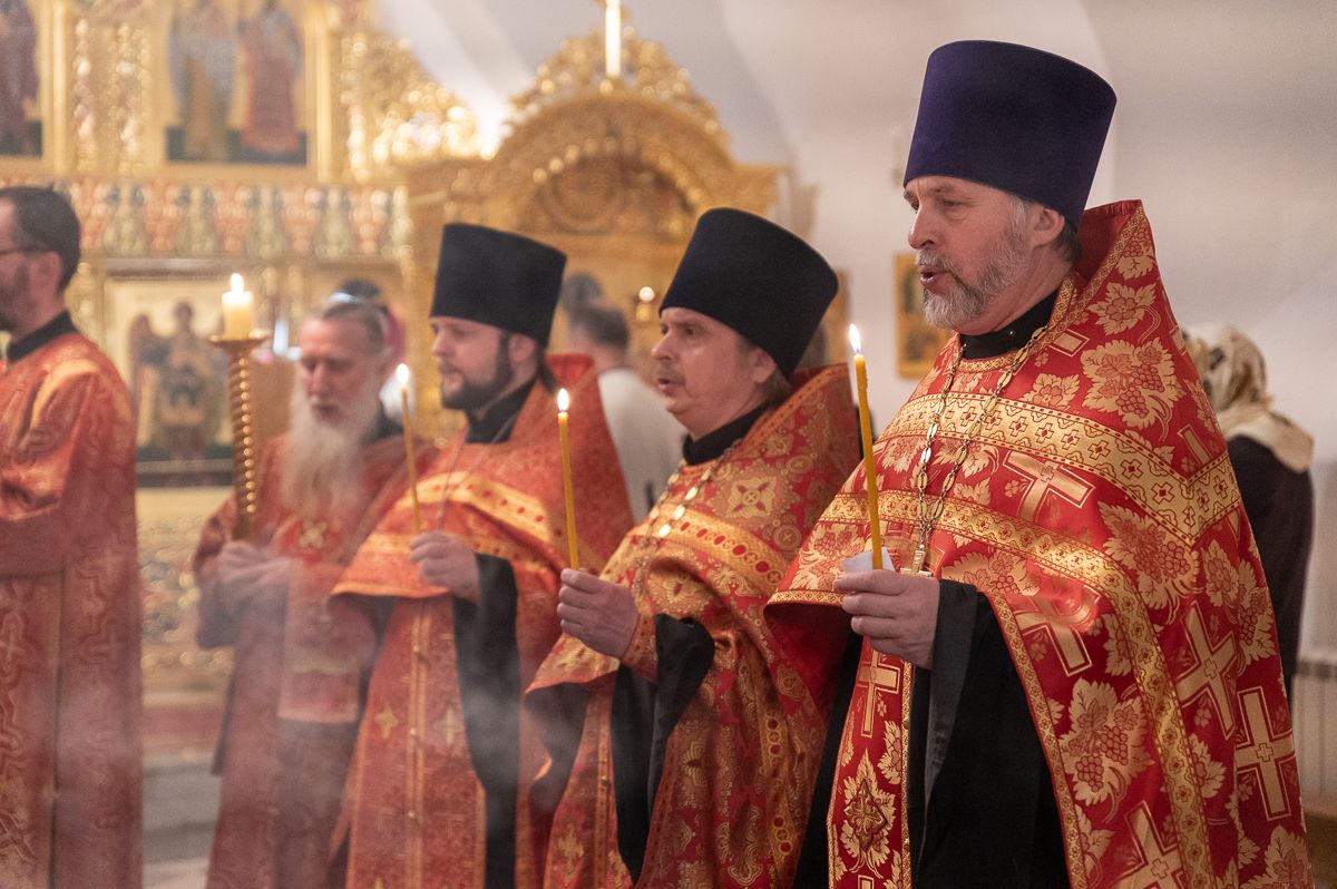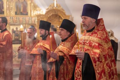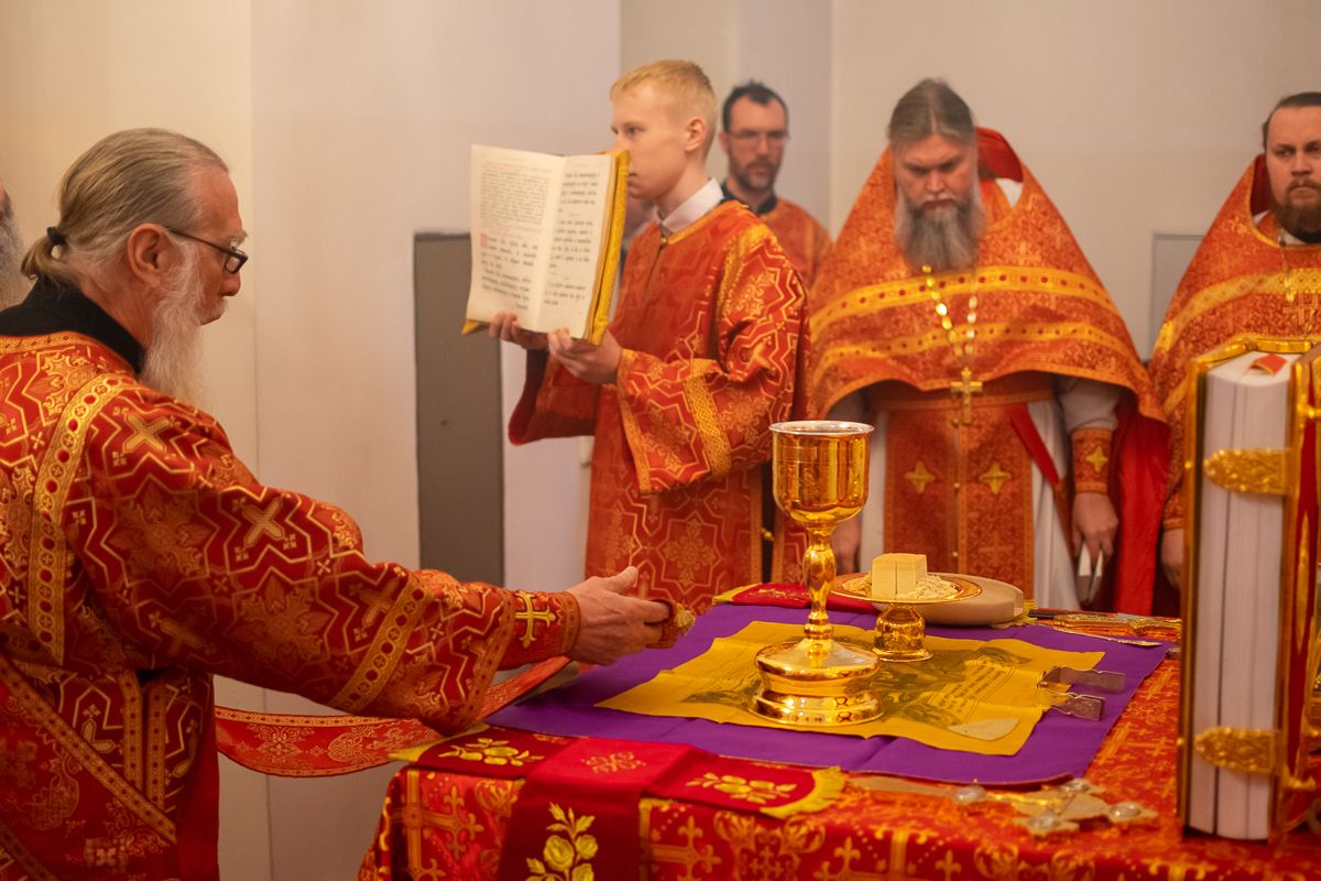 За Литургией архипастырю сослужили секретарь Йошкар-Олинского епархиального управления иеромонах Серафим (Пасанаев), настоятель Серафимовского храма протоиерей Александр Бачурин, клирики храма протоиерей Василий Лихачев, иереи Константин Домрачев, Виктор Умрихин, Николай Бабич, диакон Димитрий Лукьянов и клирик храма Рождества Пресвятой Богородицы с. Семеновка протодиакон Михаил Козловский. Песнопения исполнял хор под управлением регента Елены Умрихиной.