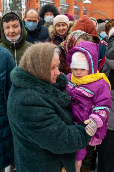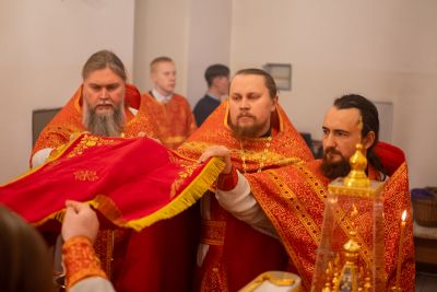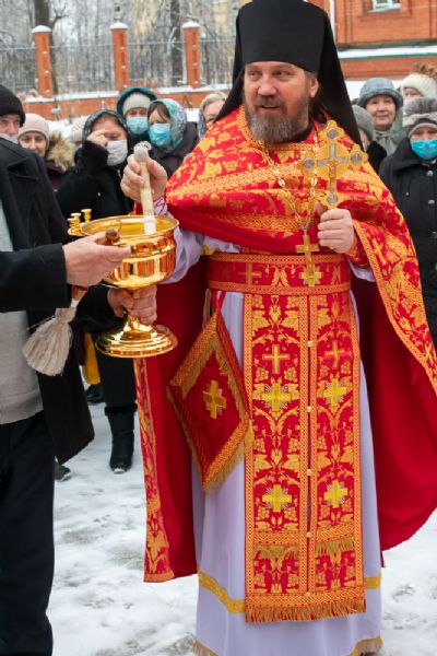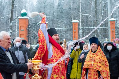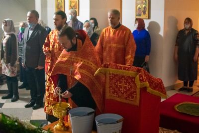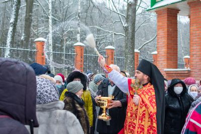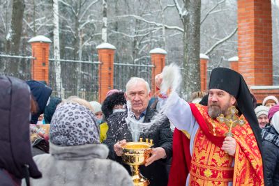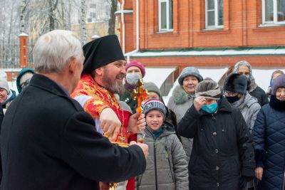 После Литургии по традиции престольных праздников был совершен крестный ход вокруг храма со чтением Евангелия и кроплением святой водой.