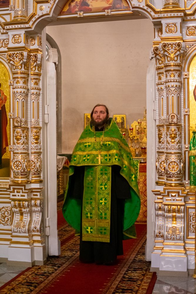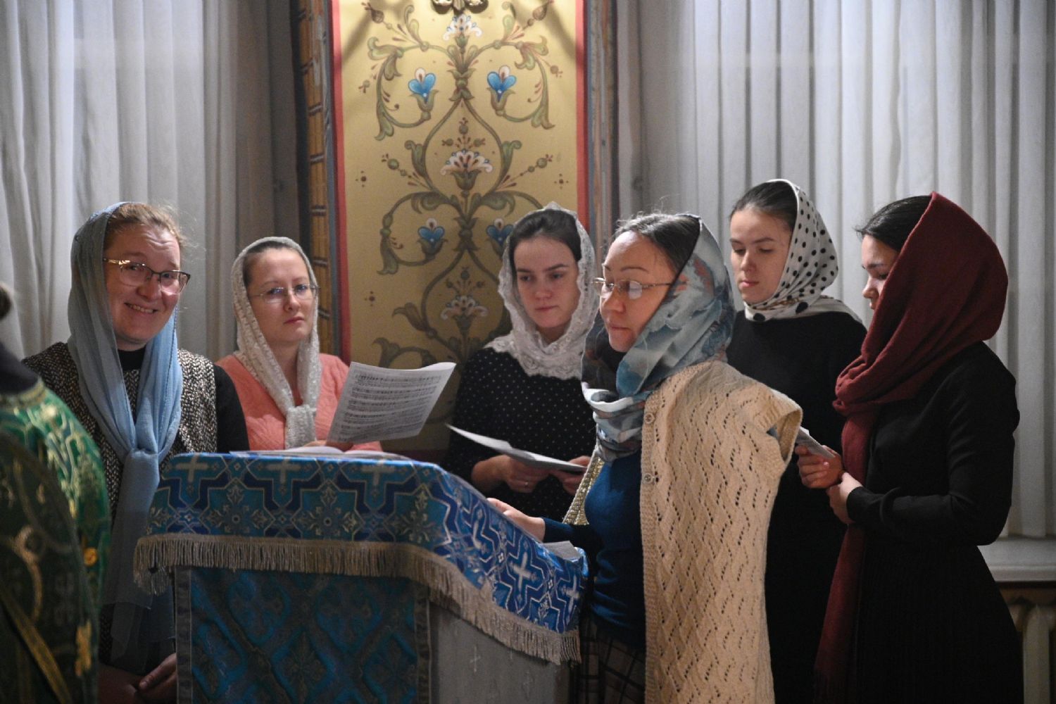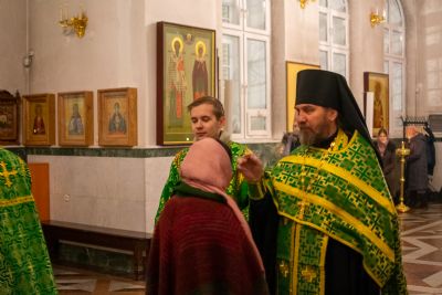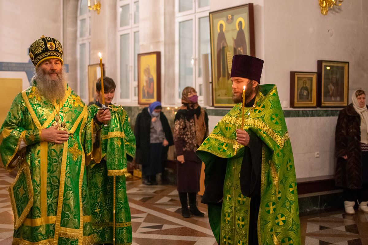 В соборе архипастырю сослужили секретарь Йошкар-Олинского епархиального управления иеромонах Серафим (Пасанаев), настоятель собора иерей Алексей Кирюшкин, клирики собора иерей Андрей Кочаков и клирик храма Рождества Богородицы с. Семёновка протодиакон Михаил Козловский. Песнопения исполнял хор собора под руководством регента Анастасии Полозовой.