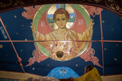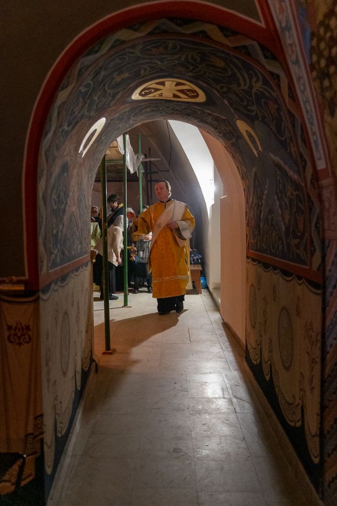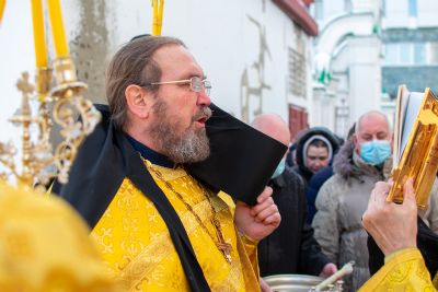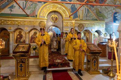 По традиции престольных праздников после Литургии прошел крестный ход вокруг храма с кроплением святой водой и чтением Евангелия.