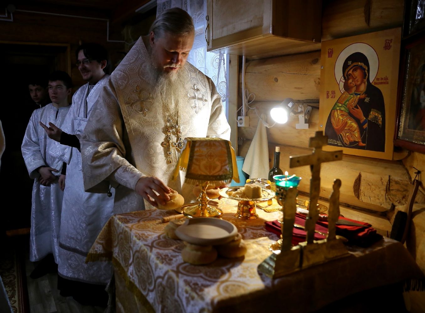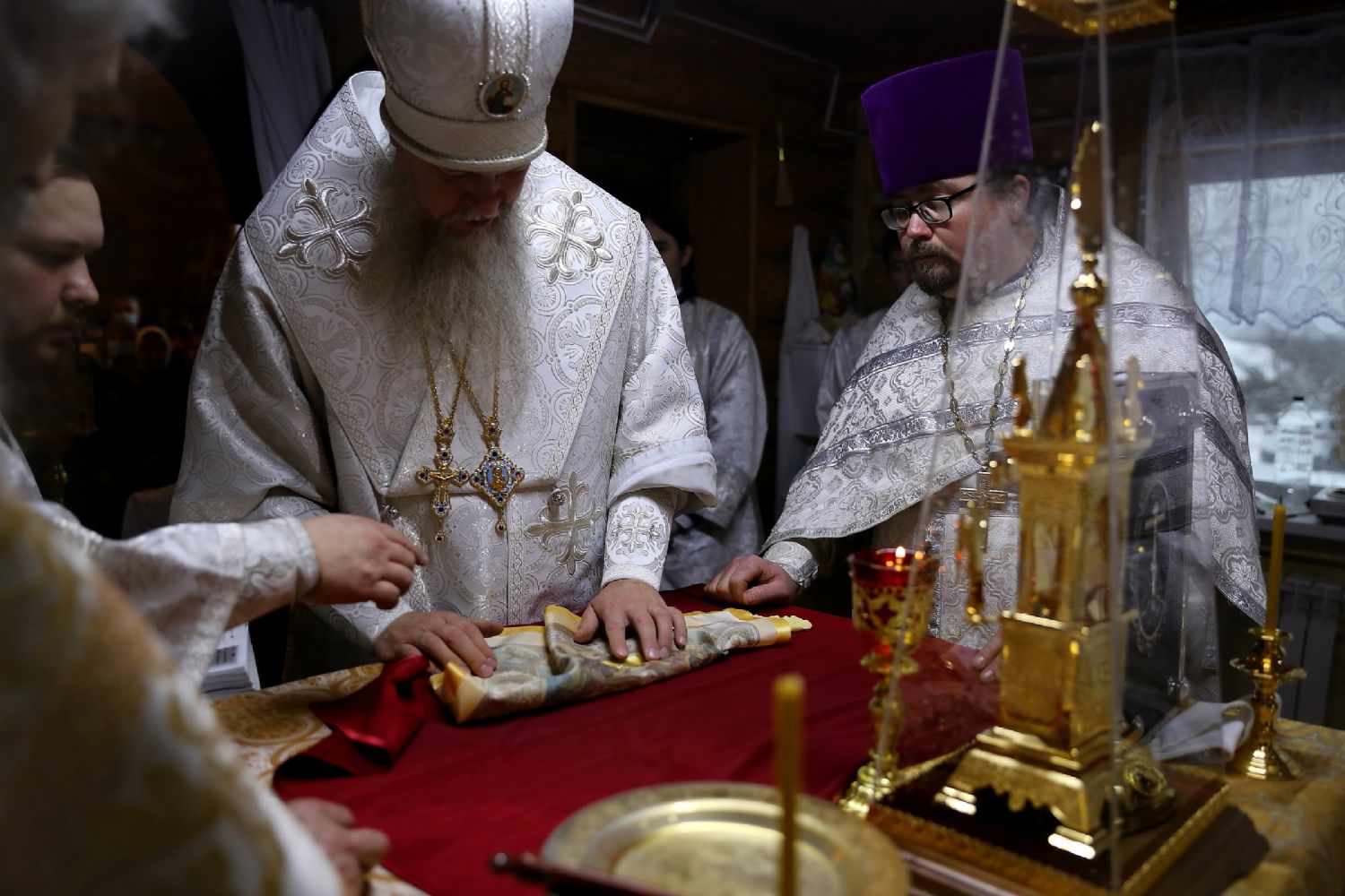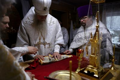«Сегодня, празднуя память этого великого святителя, мы с вами собрались, чтобы с Божией помощью совершить освящение престола и всего храма, а также и почтить память этого великого угодника Божия, который, верю, сегодня помолится о нас у Престола Божия, – отметил епископ Феофан. – И мы, возведя свои сердечные очи к святителю, испросим его молитв, чтобы Господь по его ходатайству укрепил каждого из нас в духовной брани, чтобы мы, хотя бы немного преуспевая в духовной жизни, смогли уподобиться тем святым, которые уже прошли этот тернистый путь и по милости Божией достигли блаженного Царствия Небесного.