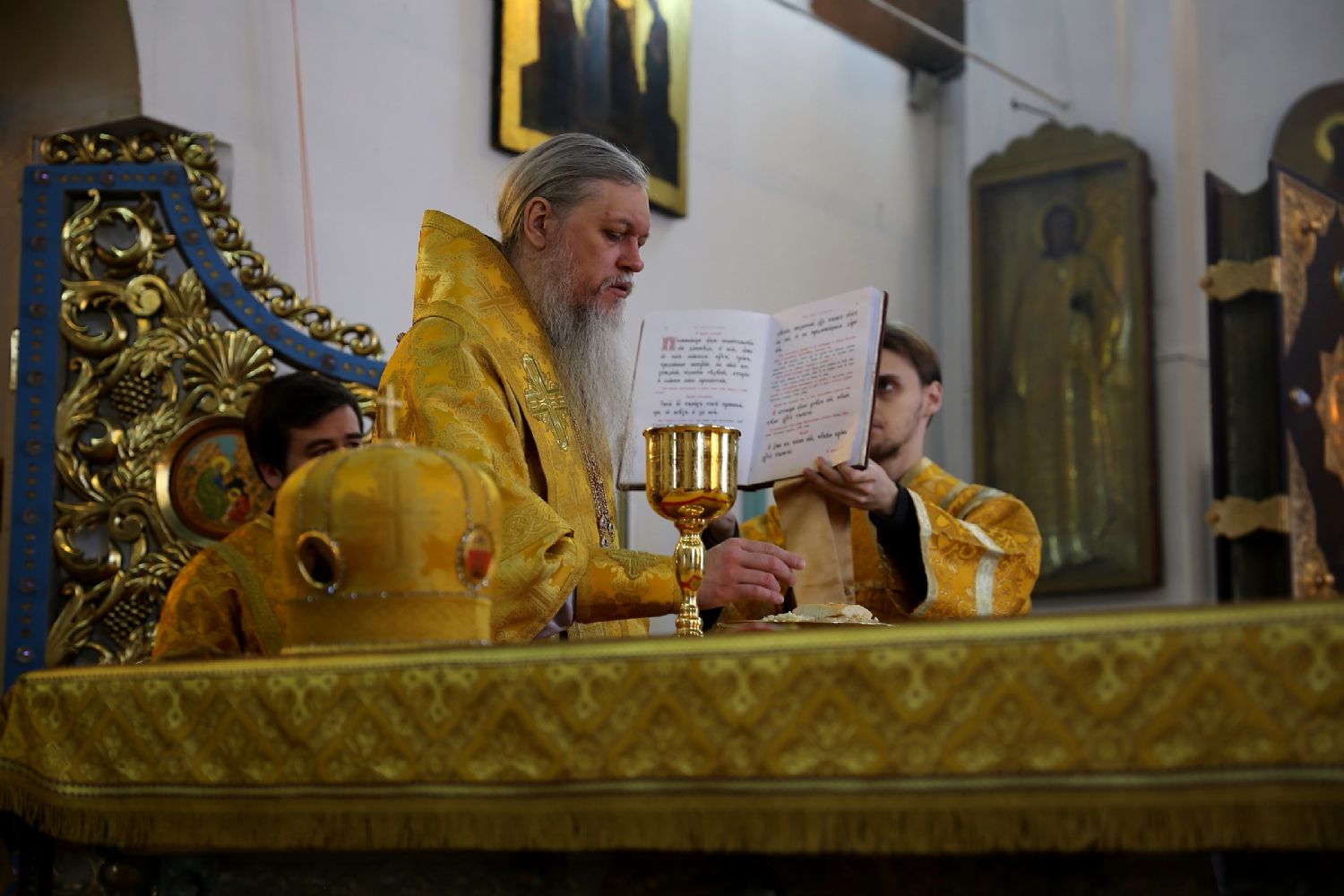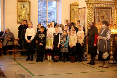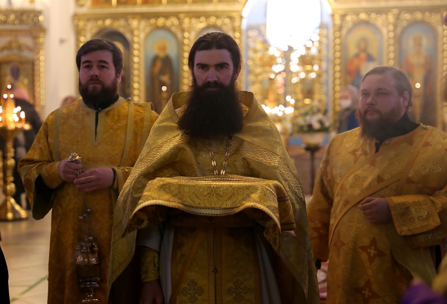 Его Преосвященству сослужило духовенство собора. За богослужением пел Архиерейский хор. В богослужебных песнопениях участвовал также детско-юношеский хор.