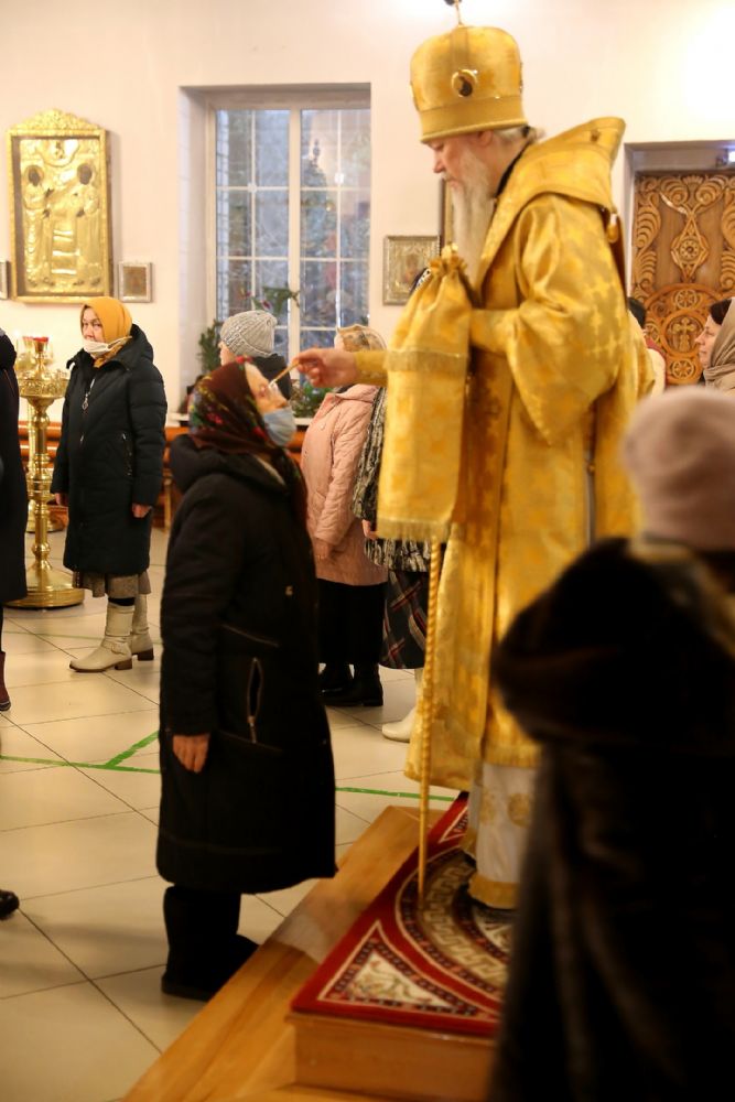 После Литургии архипастырь обратился к верующим с проповедью, рассказав о тех святых, которых Церковь вспоминает в этот день. Помимо Святых Праотцев, это мученики Фирс, Левкий и Каллиник, пострадавшие за Христа в середине третьего века, а также священномученик Николай Ковалев, пресвитер, который по приговору безбожных властей был расстрелян 27 декабря 1937 года.