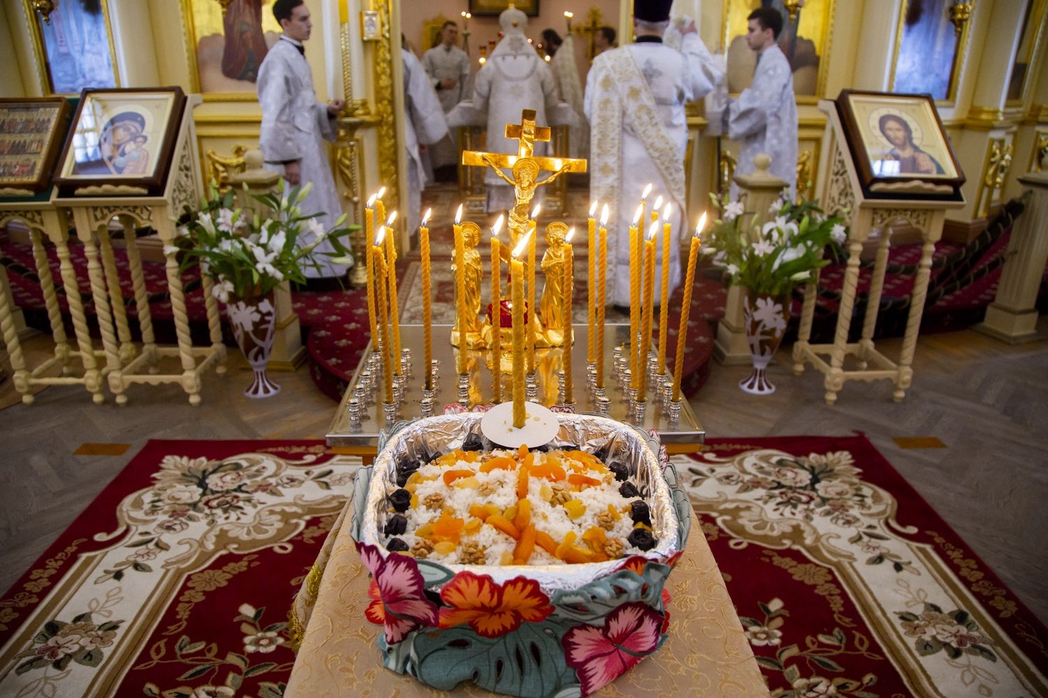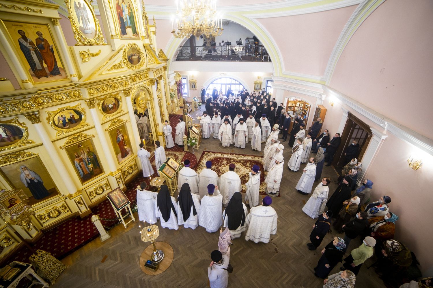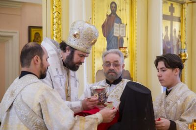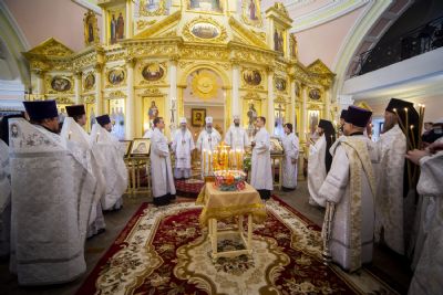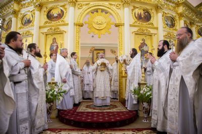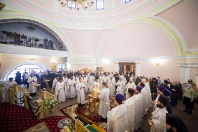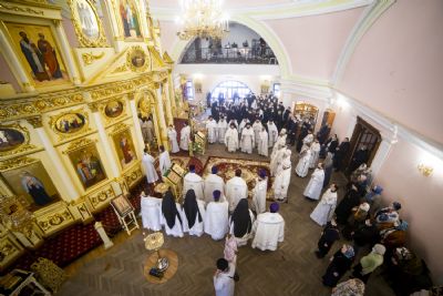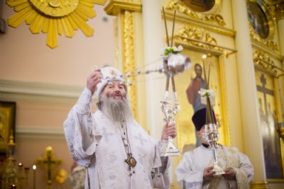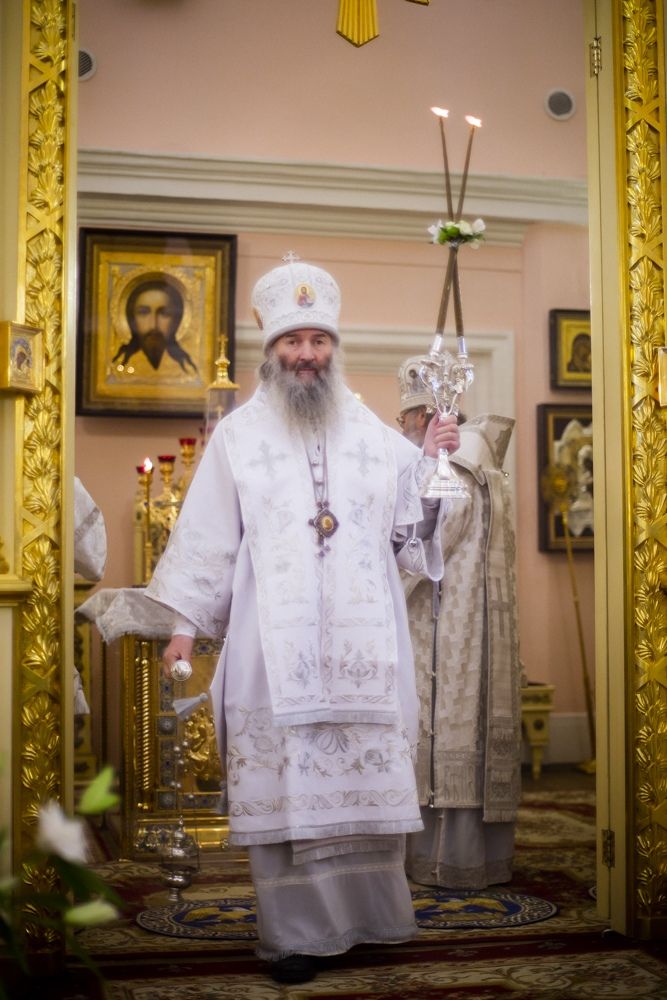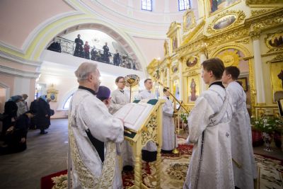 Богослужебные песнопения исполнялись архиерейским мужским хором под управлением Дениса Рогова.