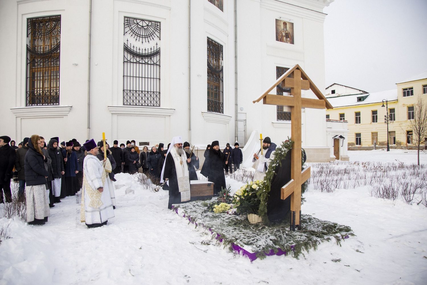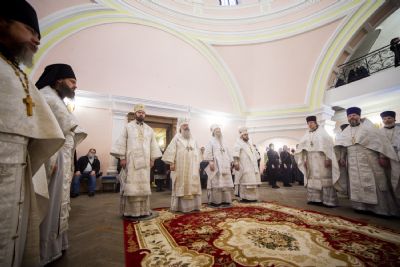 Затем архипастыри и сонм священнослужителей совершили панихиду по митрополиту Феофану. Заупокойное богослужение сопровождалось всенародным пением.