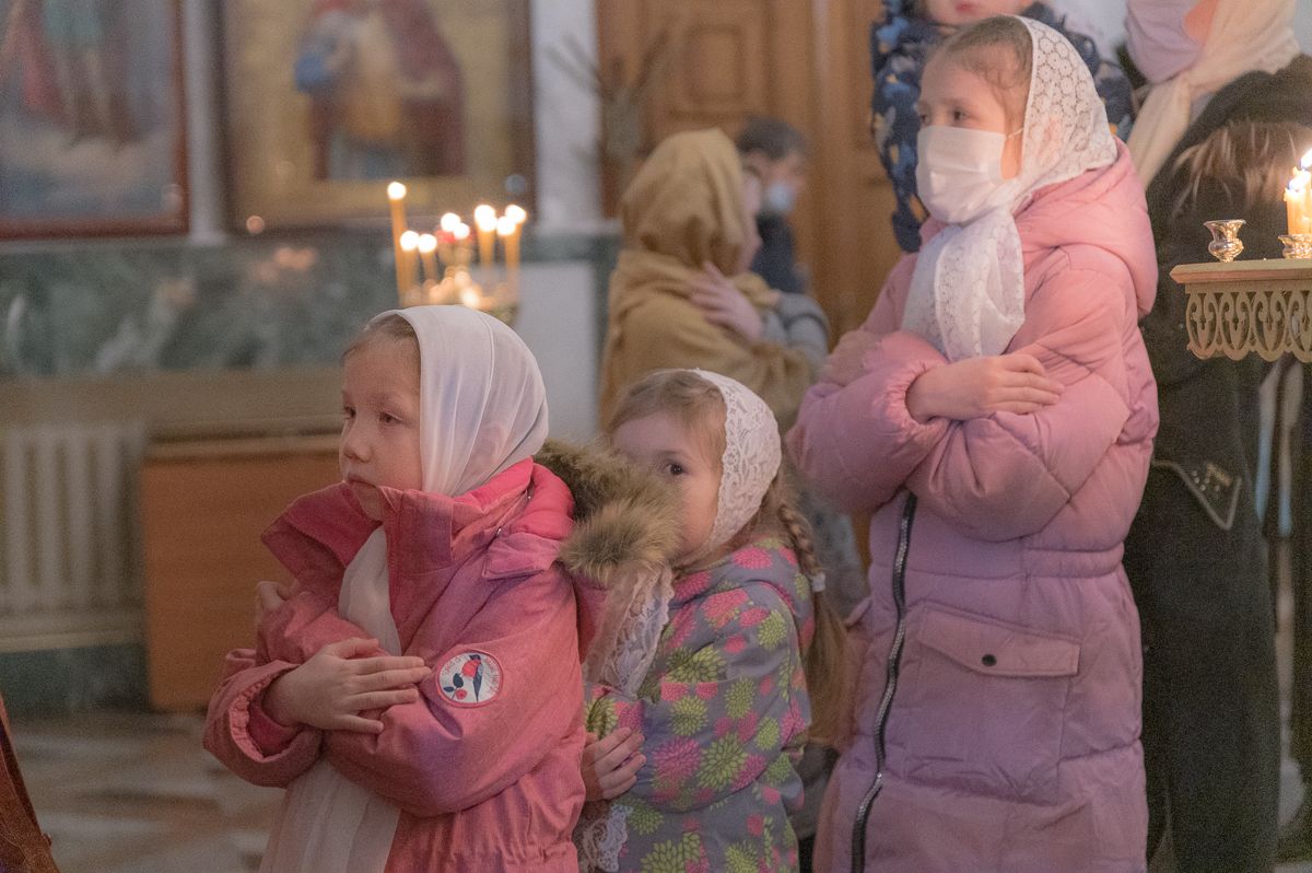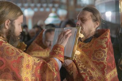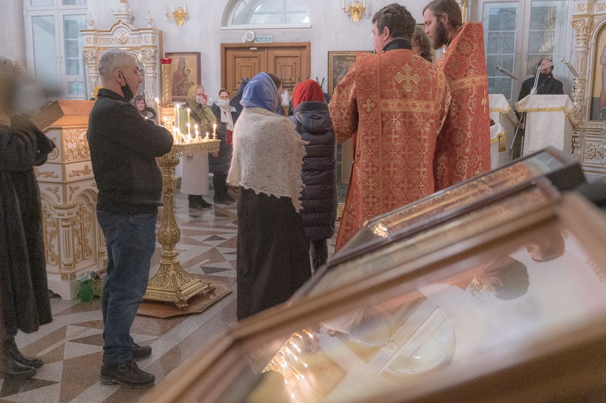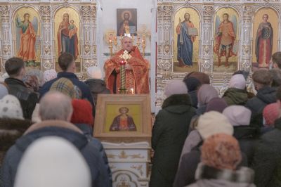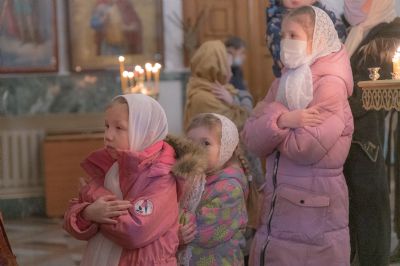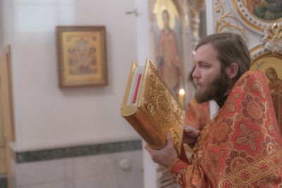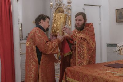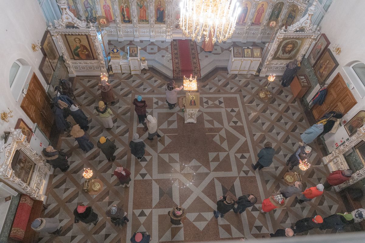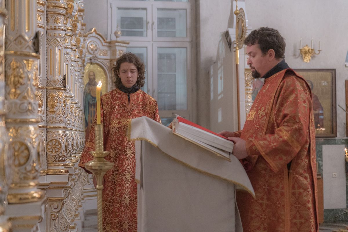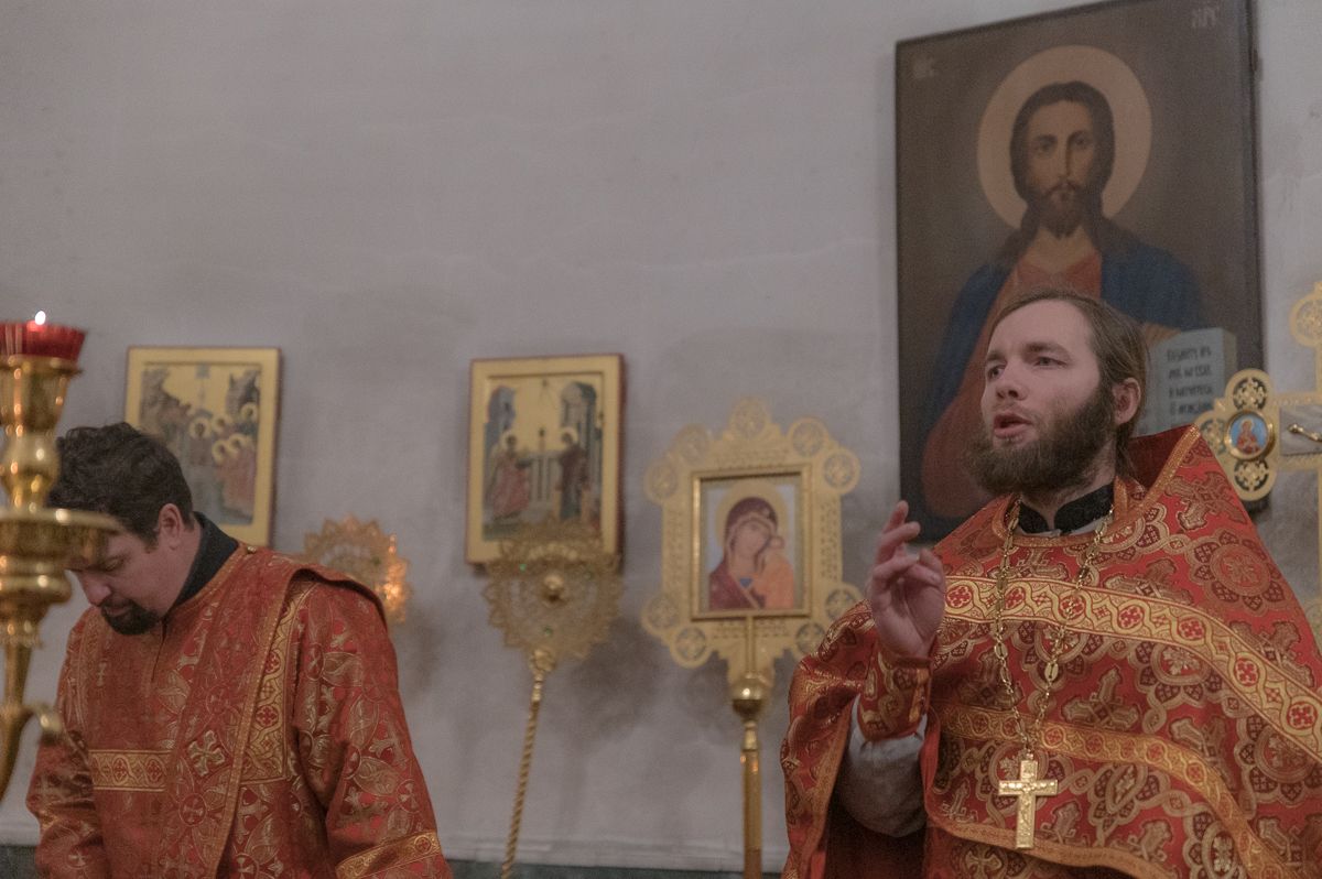 Богослужение возглавил настоятель собора иерей Алексей Кирюшкин в сослужении духовенства собора. Песнопения исполнял хор под руководством регента Алисы Вылегжаниной.