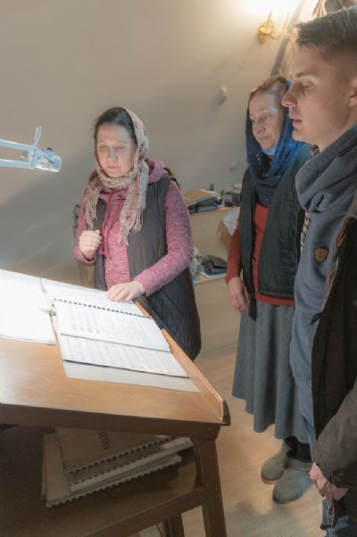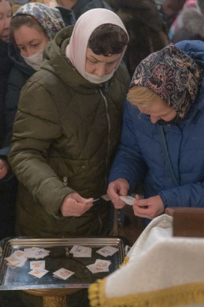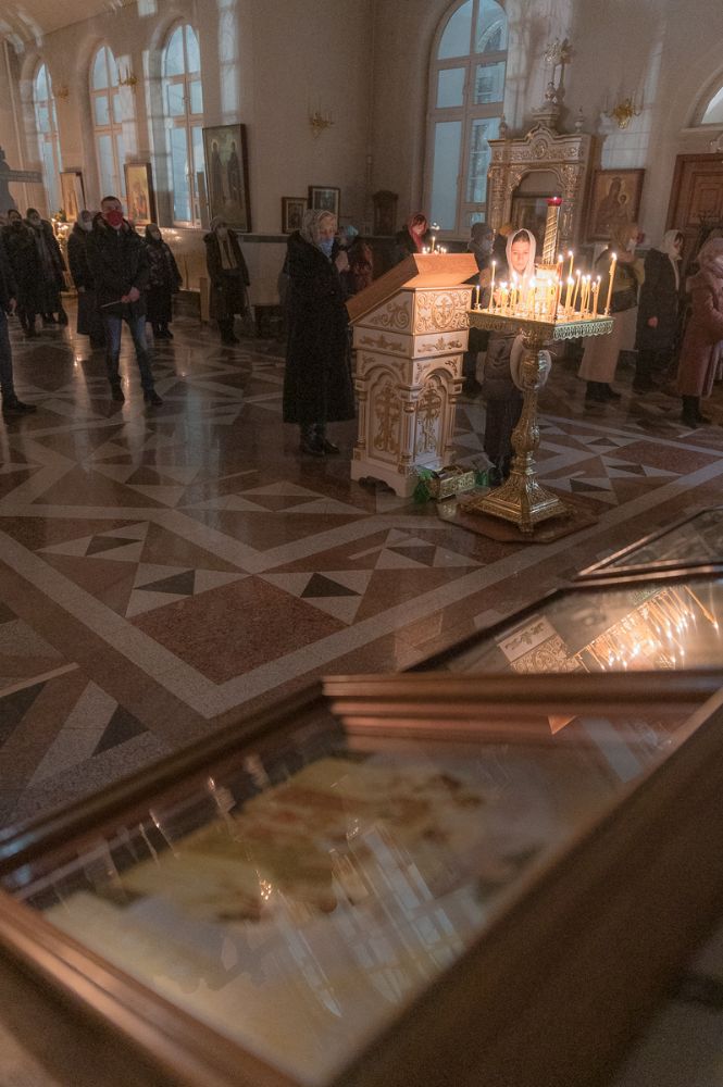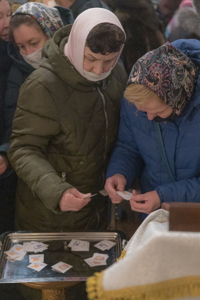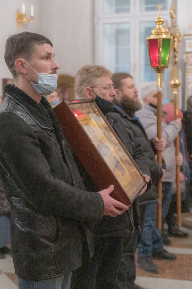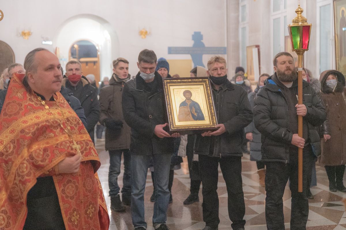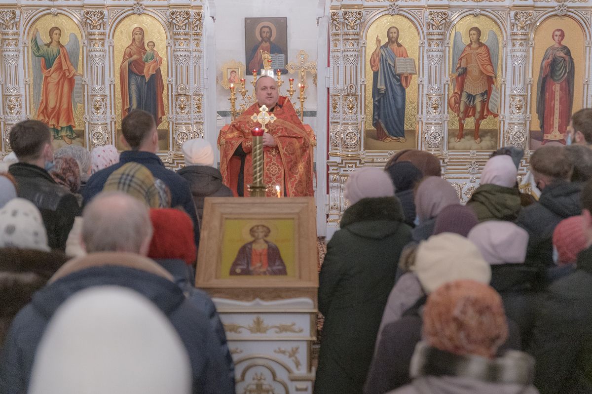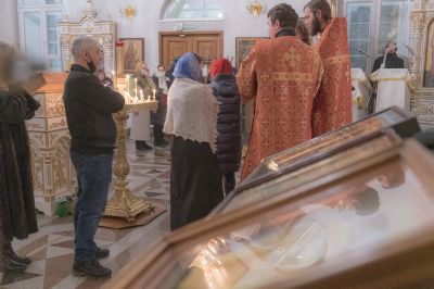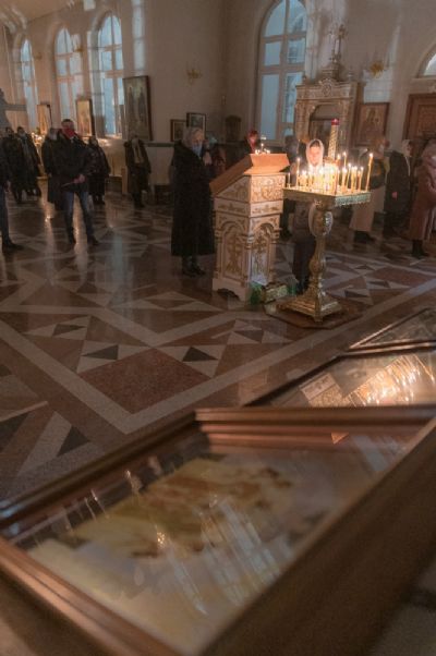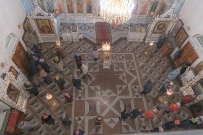 Богослужение возглавил настоятель собора иерей Алексей Кирюшкин в сослужении духовенства собора. Песнопения исполнял хор под руководством регента Алисы Вылегжаниной.