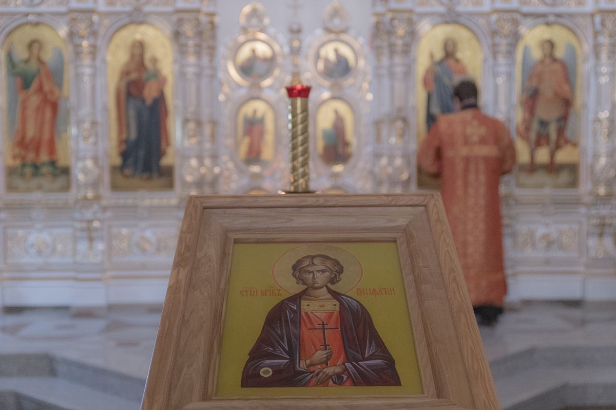 После Литургии состоялся молебен святому мученику Вонифатию и крестный ход вокруг храма.