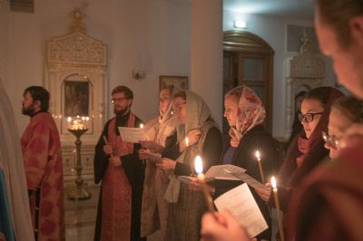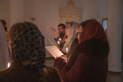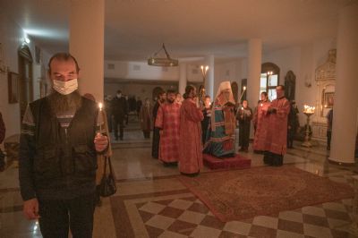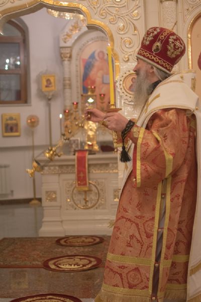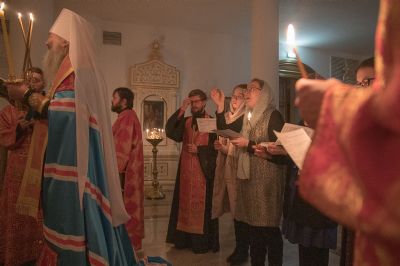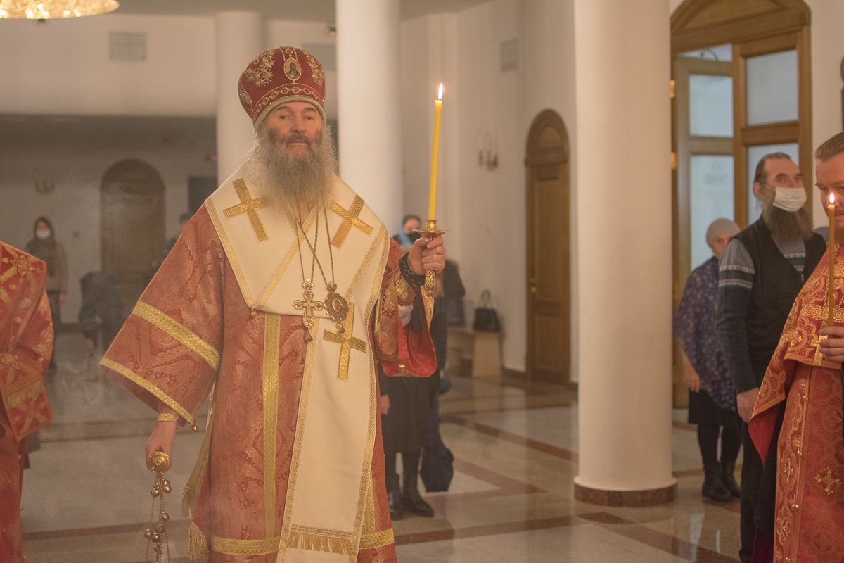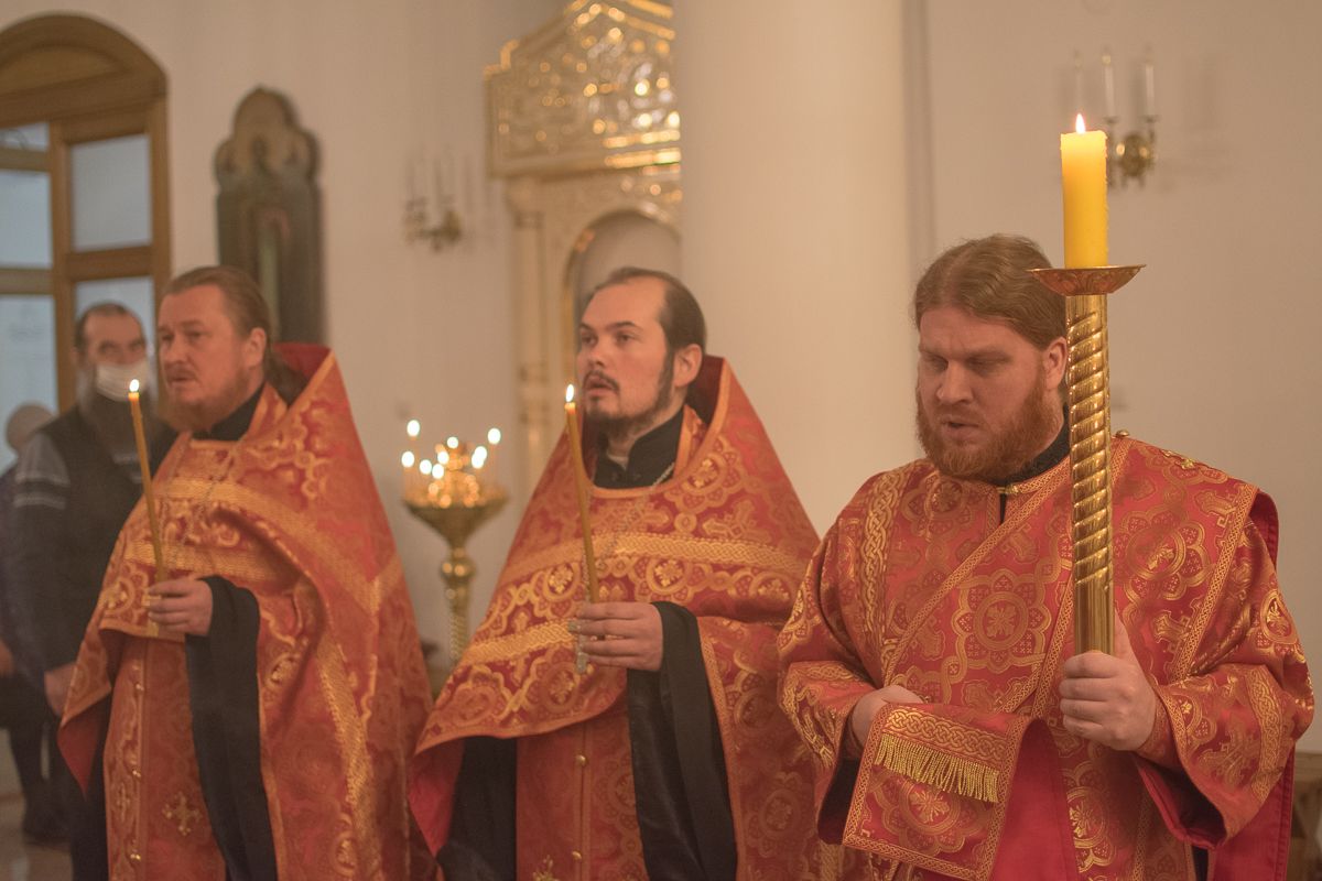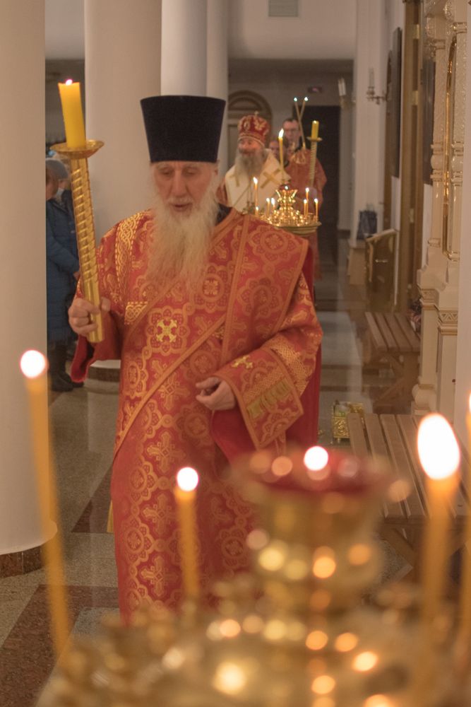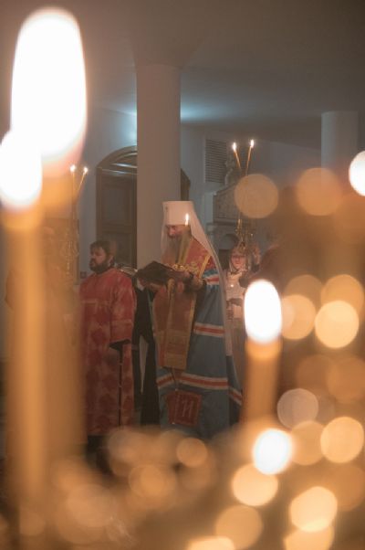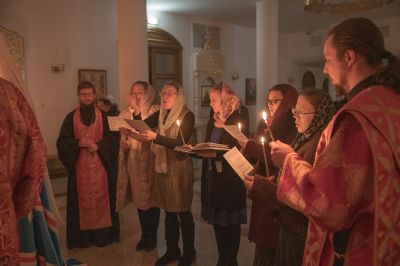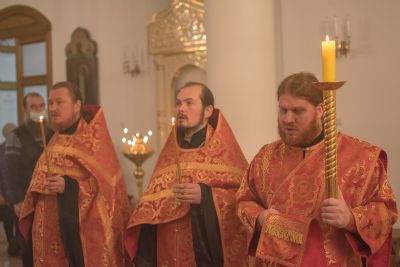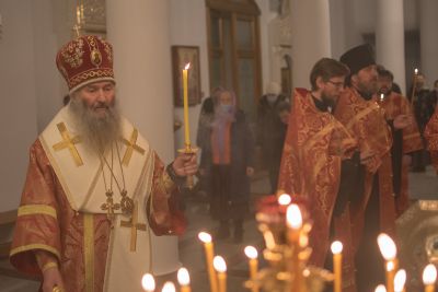 3 января вечером, накануне дня памяти великомученицы Анастасии Узорешительницы, митрополит Йошкар-Олинский и Марийский Иоанн возглавил вечерню, малое повечерие и утреню в нижнем приделе Благовещенского кафедрального собора.