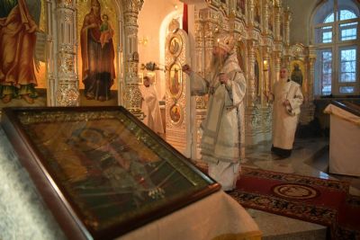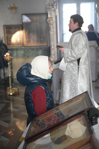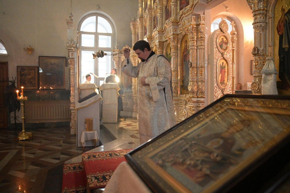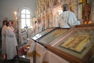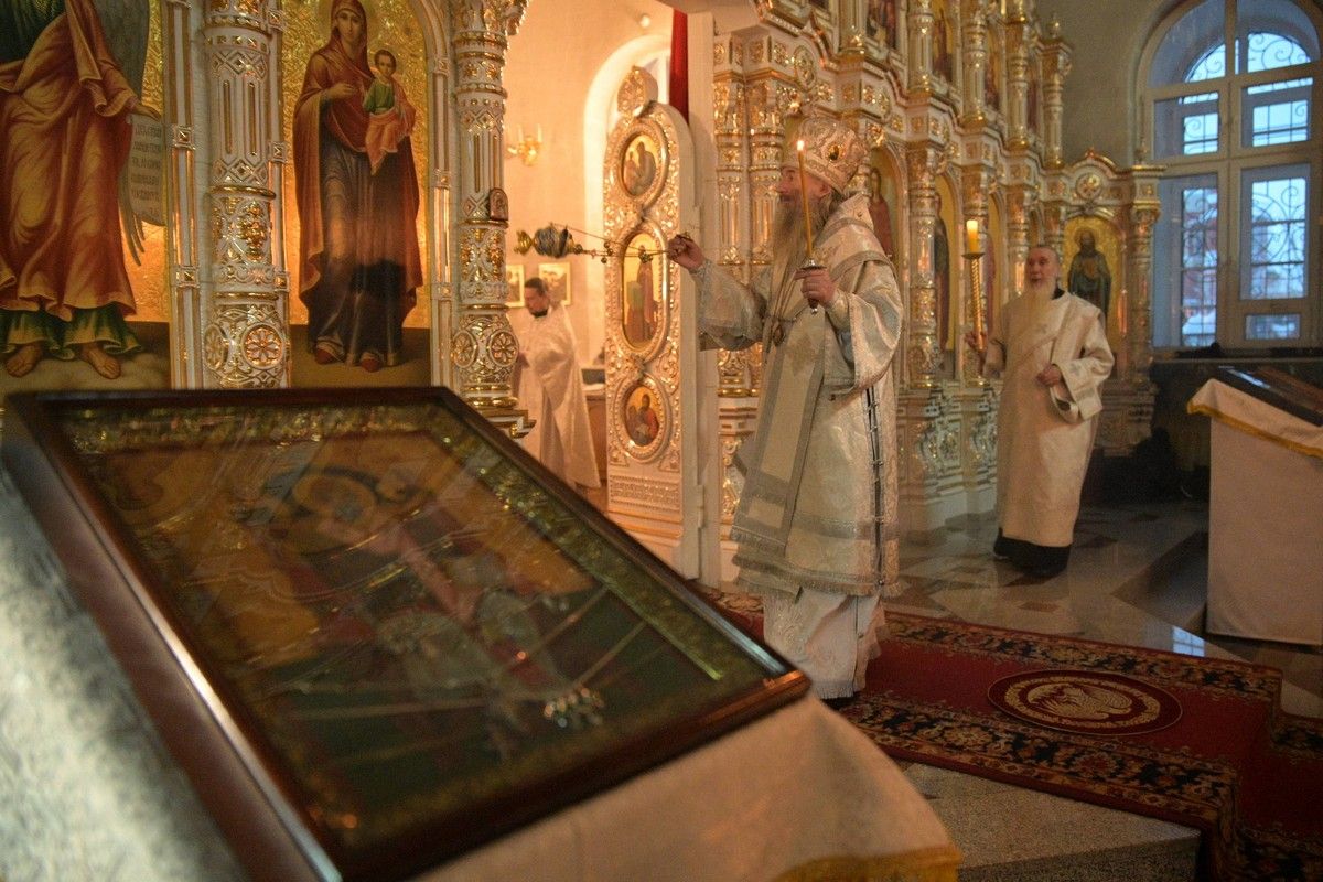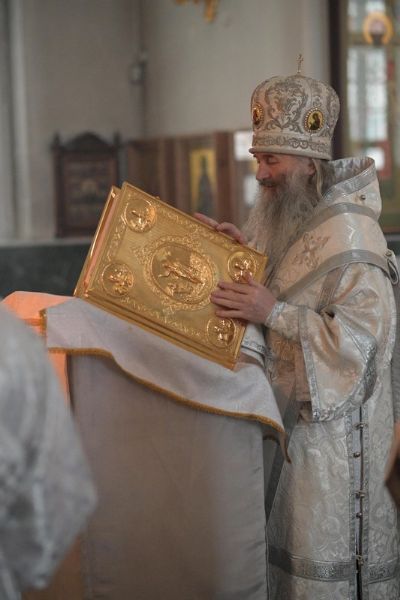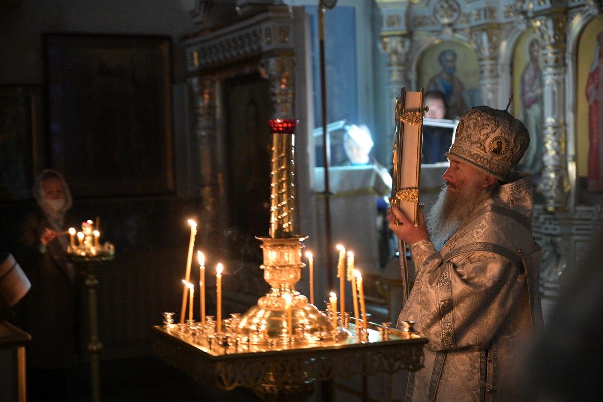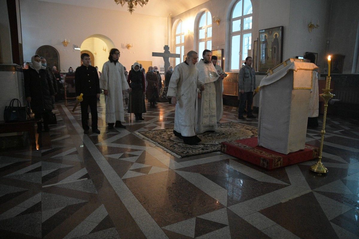 Владыке сослужили клирики собора иерей Андрей Кочаков, иерей Димитрий Лукьянов, диакон Алексий Кузнецов и клирик храма Рождества Пресвятой Богородицы с. Семеновка протодиакон Михаил Козловский. Песнопения исполнял хор собора под управлением регента Алисы Вылегжаниной.