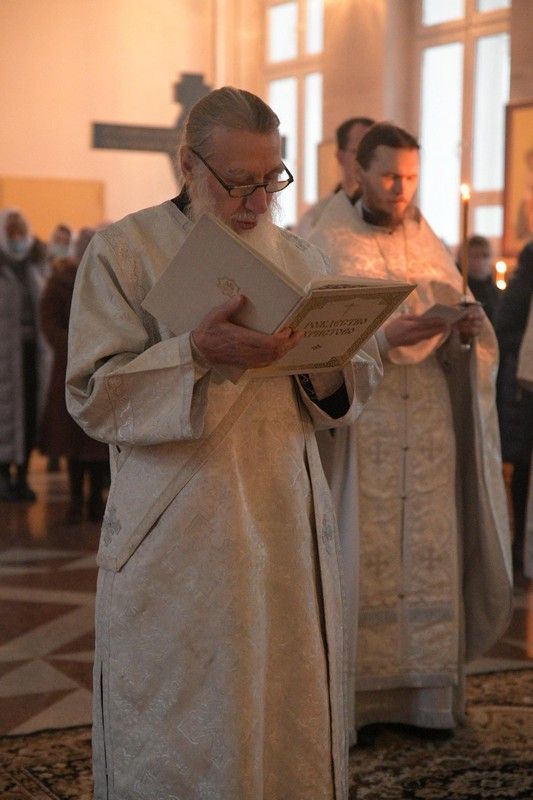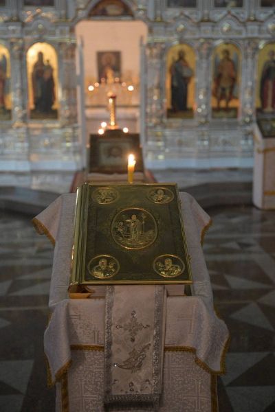 Божественная литургия началась вечерней с чтением 8 ветхозаветных паремий приготовляющих слушающих к грядущему празднику Рождества Христова. После Литургии перед выносной свечой на амвоне пропели тропарь, кондак и величание праздника. Затем Владыка обратился к собравшимся с архипастырским словом, призвав всех приготовить ясли своей души и сердца для принятия Богомладенца Христа – чтобы испытать тот благодатный мир, о котором возвестили ангелы: «Слава в вышних Богу и на земли мир, в человецех благоволение».